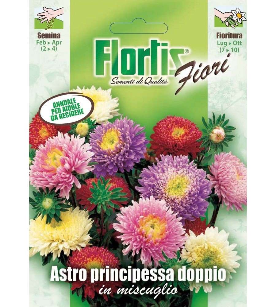Descrizione: Scopri le sementi di fiori Astro Principessa Doppia Mix, ideali per la semina diretta. Perfette per colorare il tuo giardino da febbraio ad aprile.