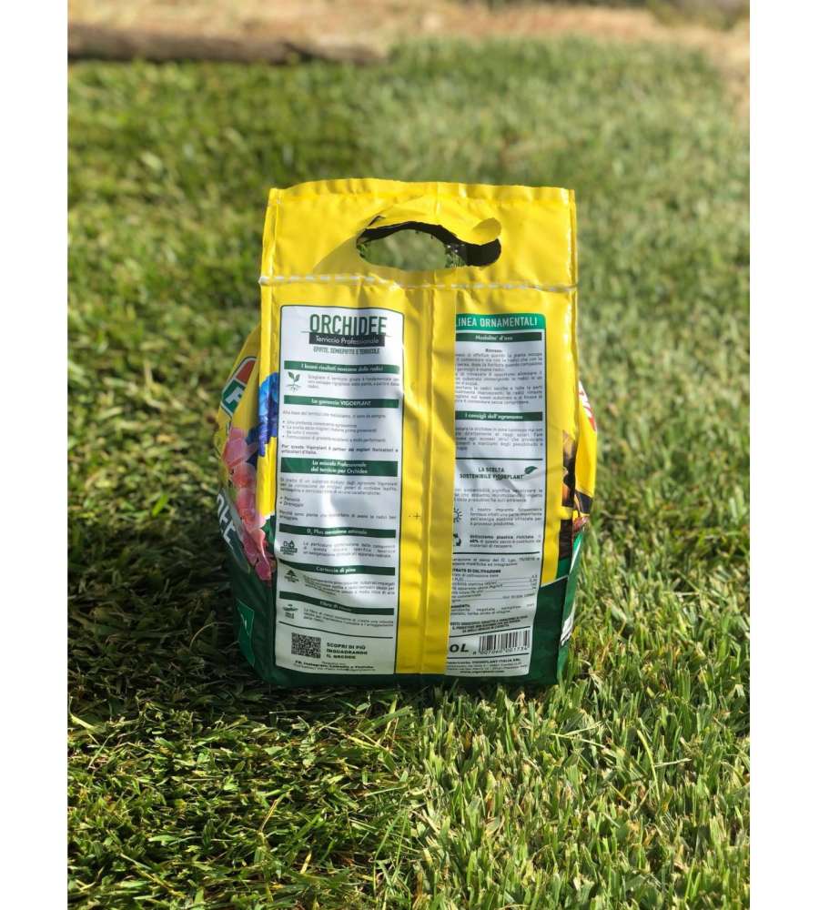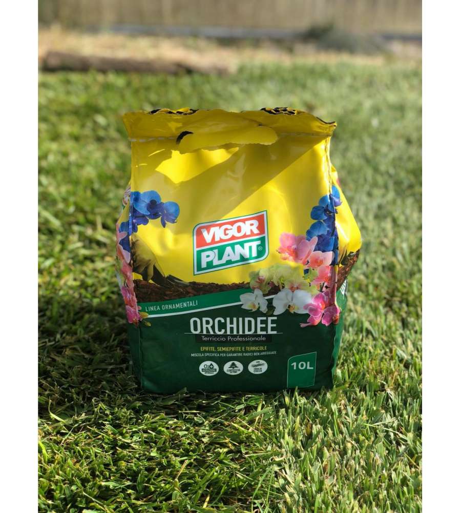 Terriccio Orchidee Bio Vigorplant 10L, composto da corteccia di pino, fibra di cocco e torba. Garantisce drenaggio e ossigenazione ottimali per radici aeree. Ideale per uso interno ed esterno, utilizzo tutto l'anno. Biologico e riciclabile.Destinazione d'uso:
