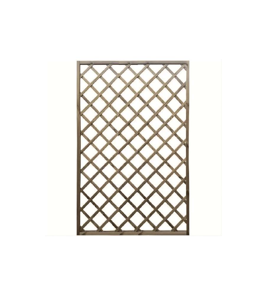 Descrizione: Grigliato diagonale in legno di conifera impregnato, ideale per giardini e terrazzi. Dimensioni 100x180 cm, maglia 9x9 cm. Resistente agli agenti atmosferici e perfetto come supporto per piante rampicanti.