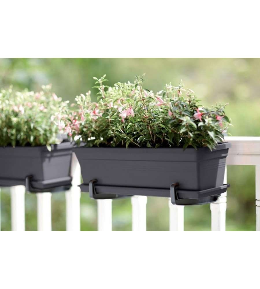Balconiera nera in plastica, dimensioni 49 x 13,7 x 16,5 cm, capacità 7.7 L, realizzata in polipropilene opaco, resistente agli UV.Capienza: