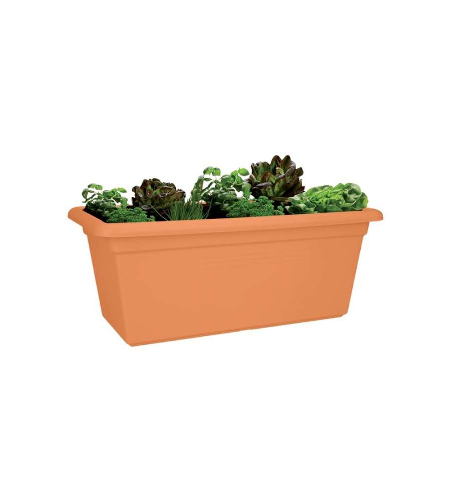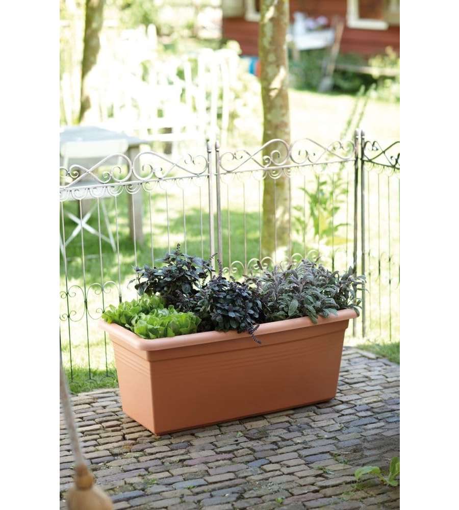 Balconiera Extra Large Beige Naturale Ø 80: realizzata in plastica marrone opaca, dimensioni 78 x 34,2 x 39 cm, adatta per giardino/balcone, include sottovaso.Capienza:
