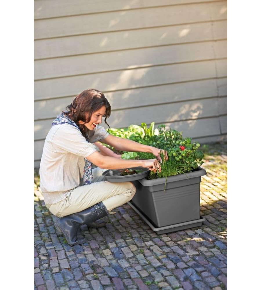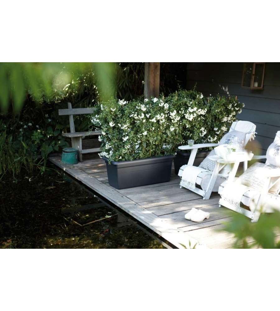 Questo vaso è stato progettato per offrire un'ottima soluzione per chi desidera coltivare piante e fiori su balconi e terrazzi. La sua struttura in polipropilene garantisce durabilità e resistenza agli agenti atmosferici, mentre il design elegante e il colore neutro si adattano perfettamente a qualsiasi tipo di arredamento esterno. Il sottovaso incluso aiuta a gestire l'acqua in eccesso, proteggendo le radici delle piante e mantenendo il terrazzo pulito e asciutto.