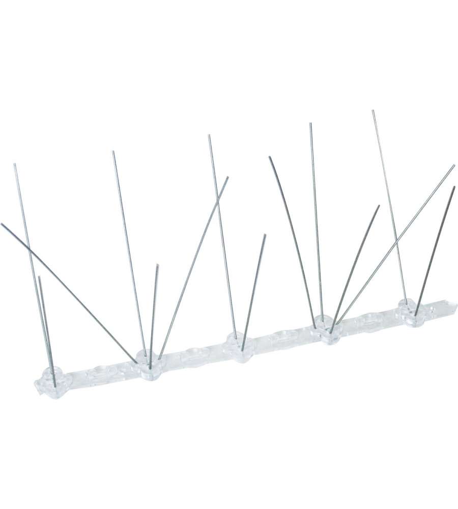 Dissuasore piccioni in acciaio inox e base in policarbonato UV-resistente. Lunghezza 1,5 m, copre superfici lineari, invisibile una volta installato, facile montaggio, resistente alle intemperie.Altro 1: