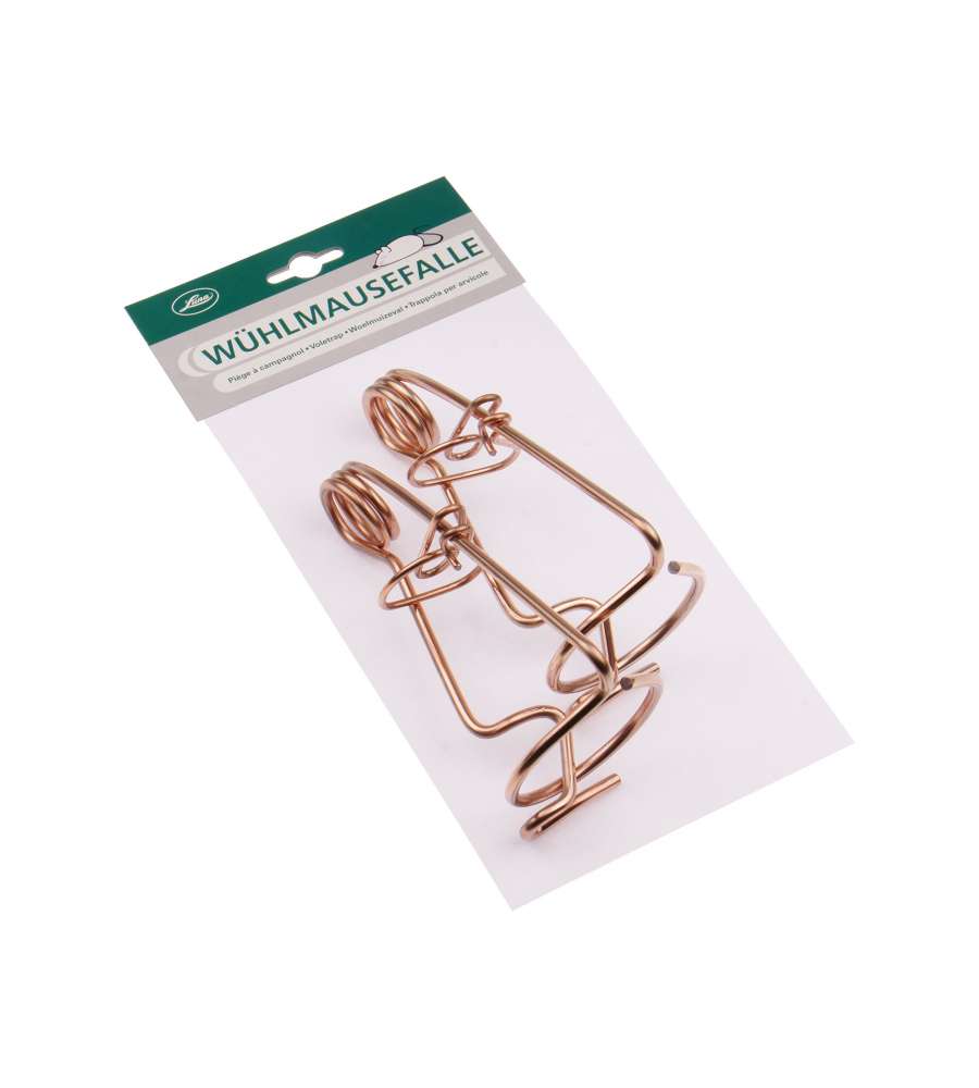 Trappola per talpe in filo d'acciaio zincato, dimensioni 16x4,7 cm, confezione da 2 pezzi. Funzionamento a ghigliottina, facile da installare e con elevata forza d'urto. Ideale per giardini e aree verdi. Cattura efficace e duratura.Materiale utensile: