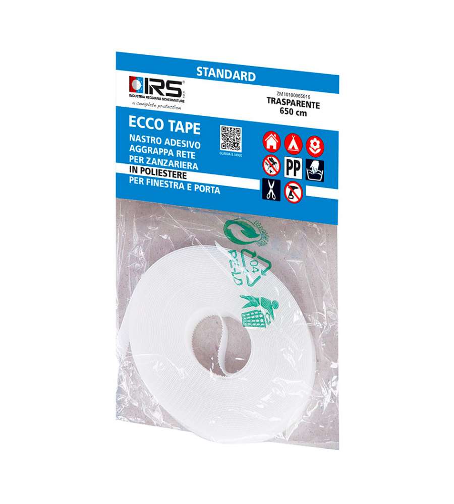 Nastro adesivo trasparente per zanzariera, in poliestere, lunghezza 650 cm. Facile installazione e adattabile in misura.Riducibile: