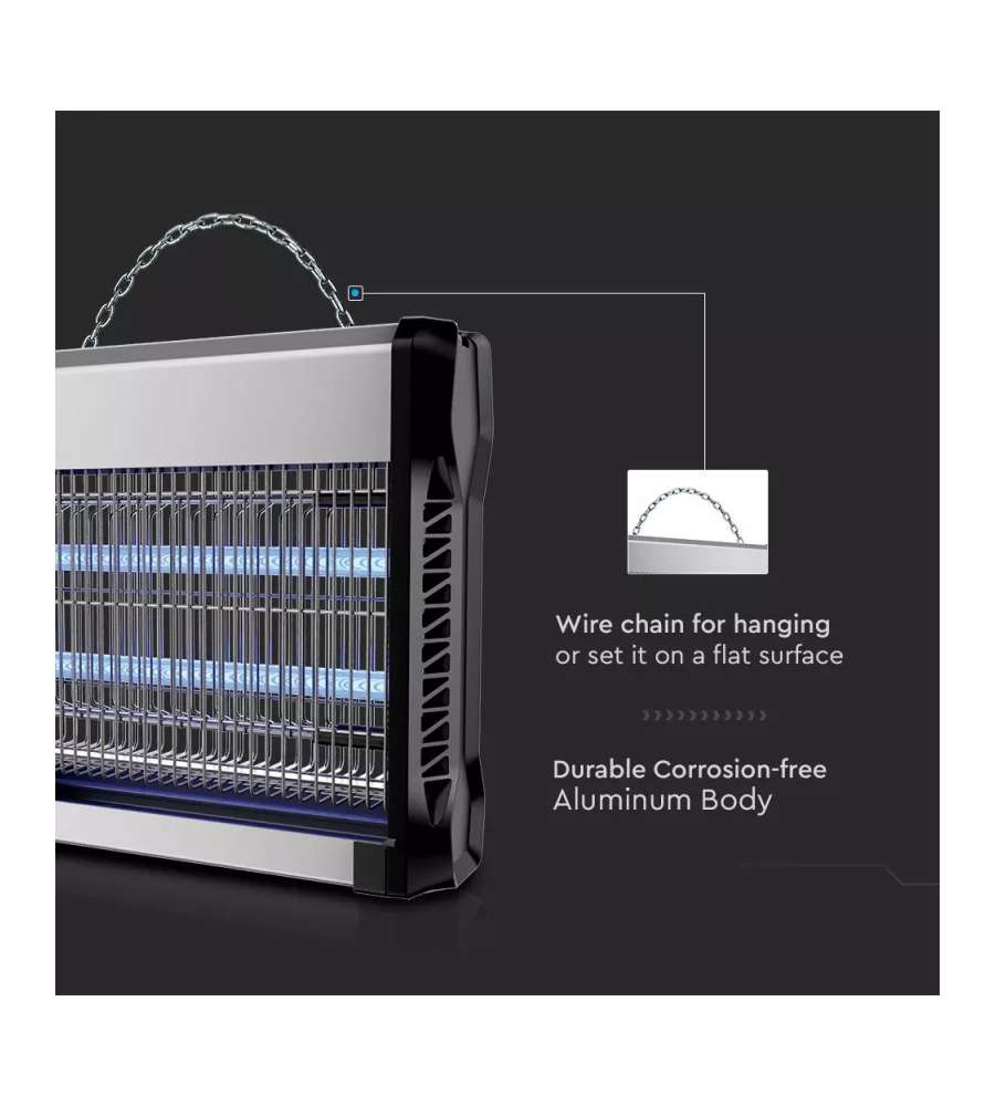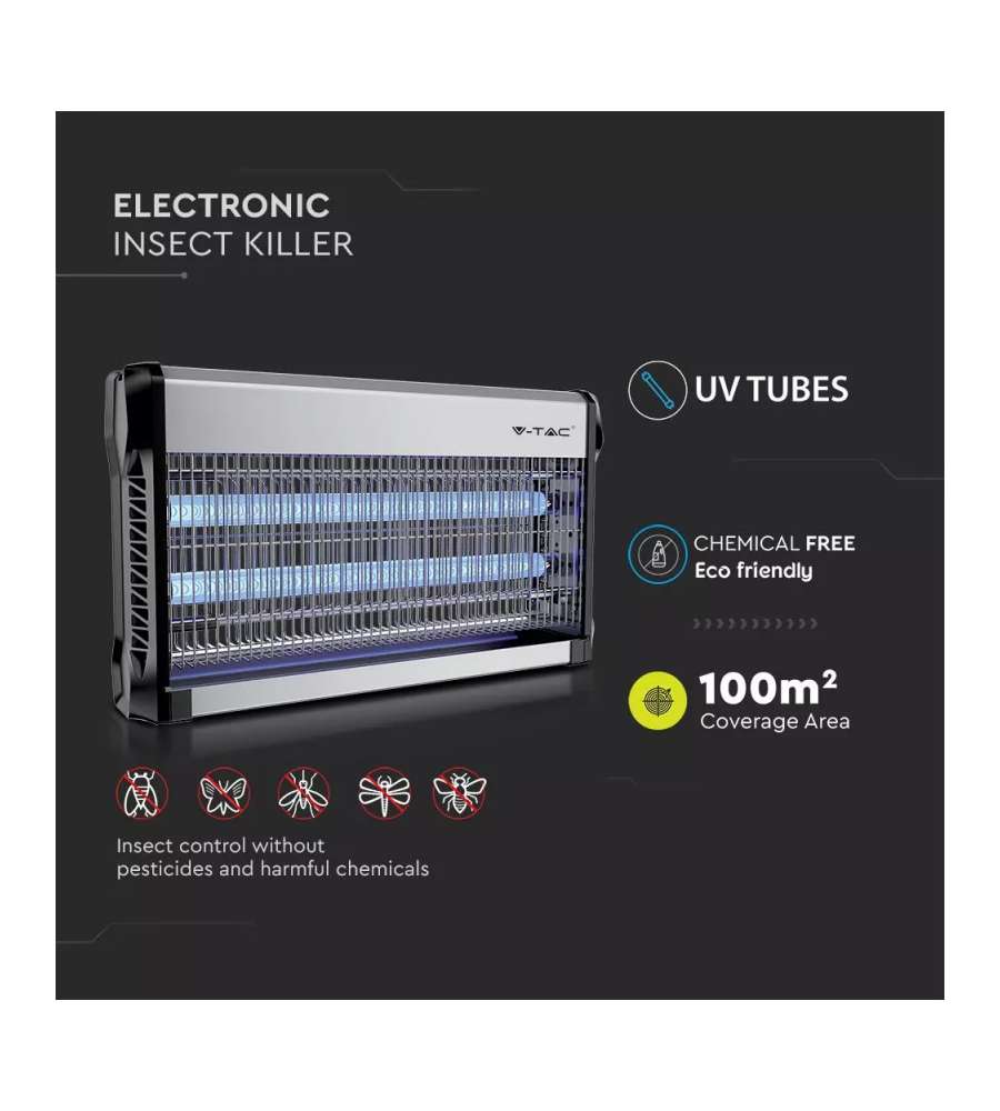 Descrizione: Lampada antizanzare V-TAC con tubi UV 2x15W, ideale per spazi fino a 100mq. Struttura in alluminio resistente e sicura, senza fumi o odori. Perfetta per interni ed esterni, elimina insetti fastidiosi.