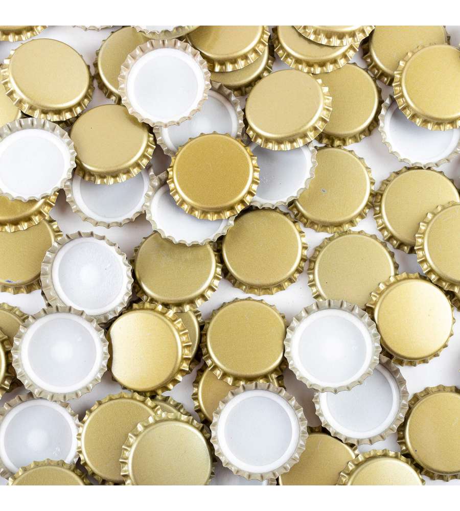 Tappi a corona Ø 26 mm di Ferrari, confezione da 100 pezzi color oro. Ideali per birra e acqua, realizzati in metallo per una chiusura sicura. Perfetti per la conservazione dei tuoi distillati.Materiale utensile: