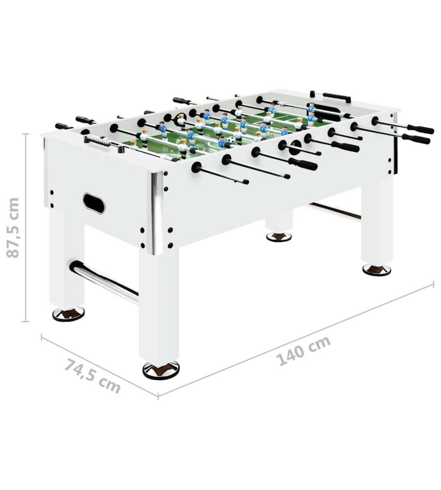 Tavolo da calcio balilla in acciaio, 60 kg, dimensioni 140x74,5x87,5 cm. Costruzione durevole in MDF e acciaio, gambe regolabili, manici antiscivolo. Include 2 porte, palloni e 22 giocatori per partite emozionanti. Adatto dai 6 anni.Genere: