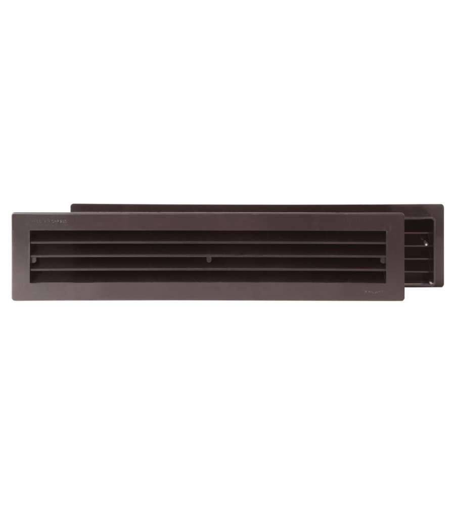 Griglia telescopica in plastica marrone, dimensioni 480x98 mm, per porte spessore 30-45 mm. Passaggio aria 250 cm², facile da installare con viti incluse. Ideale per migliorare la qualità dell'aria e prevenire umidità e muffe.Altro 1: