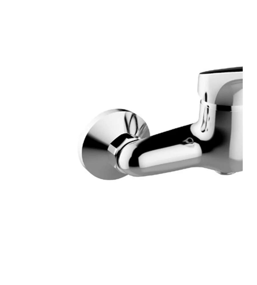 Rubinetto miscelatore doccia Mia, cromato, monocomando, diametro 40 mm. Include raccordi eccentrici, rosette e supporti a muro per variare l'interasse.