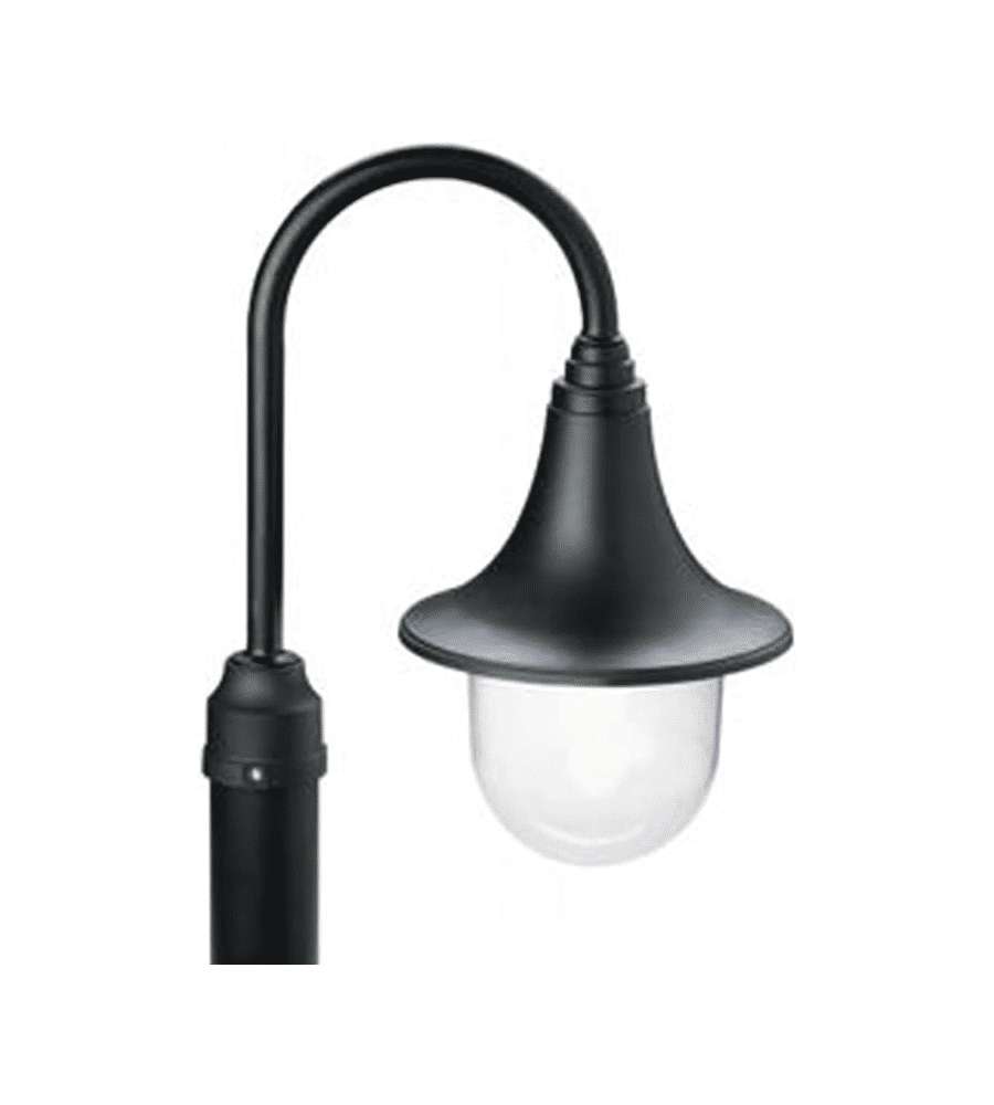 Testa-palo in alluminio nero per illuminazione esterna, con design elegante e dimensioni 330x410x220 mm. Attacco E27, compatibile con lampade a risparmio energetico, grado di protezione IP43, ideale per giardini e vialetti.Garanzia: