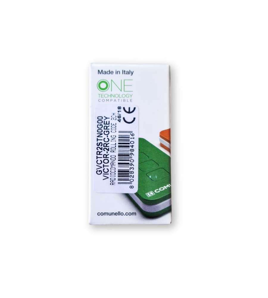Descrizione: Radiocomando Originale Victor 2 Fc Comunello, compatibile con dispositivi a 433,92 MHz. Dotato di 2 tasti e codifica rolling code, offre sicurezza e praticità per il controllo di cancelli e garage.