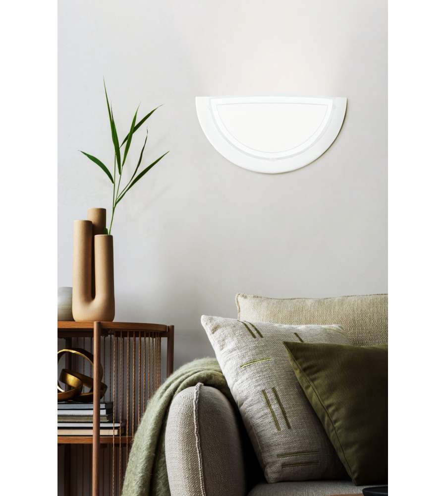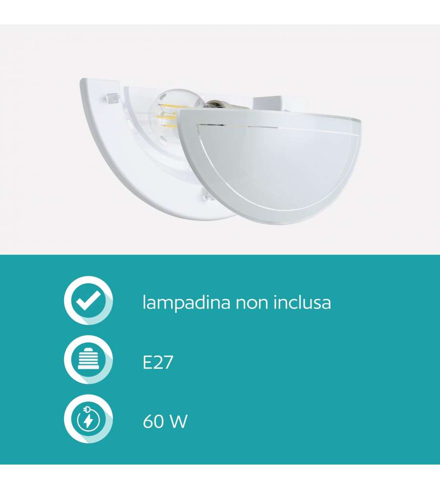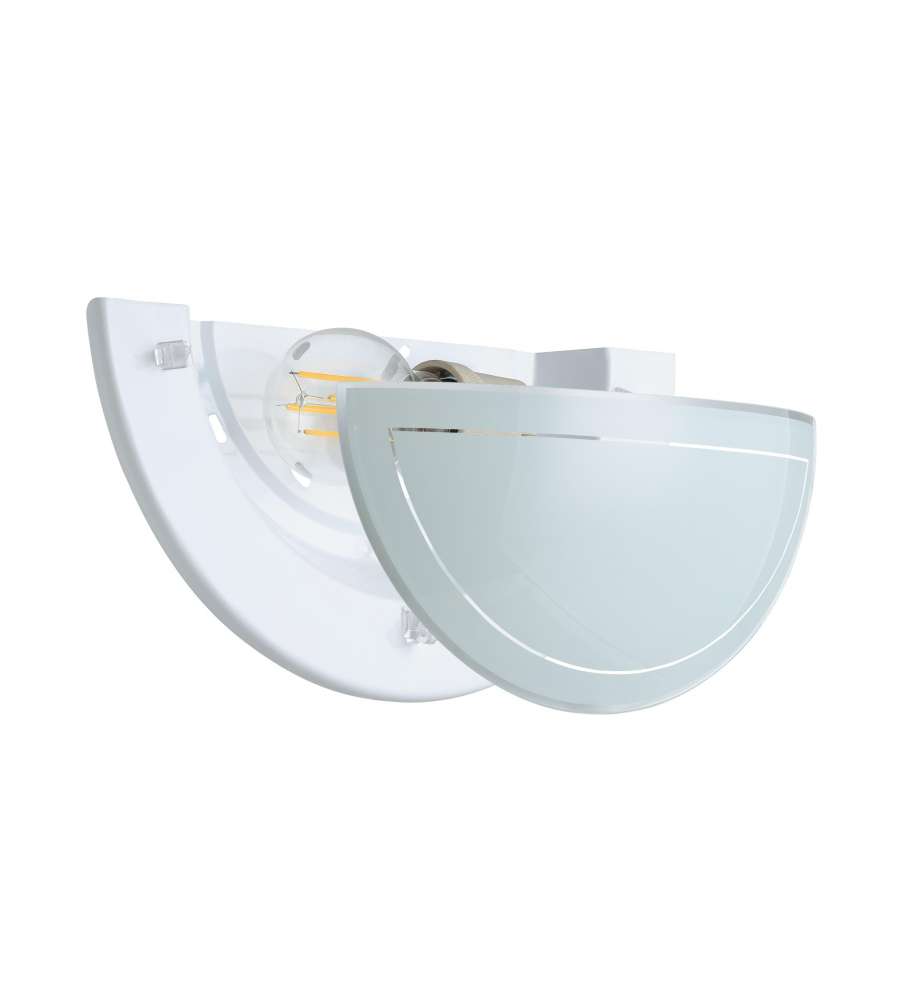 Applique da parete elegante e moderna in acciaio bianco con vetro laccato, compatibile con lampadine E27 fino a 60W. Dimensioni compatte: 29x14,5 cm, grado di protezione IP20, ideale per interni come cucina e soggiorno. Facile da installare.Garanzia: