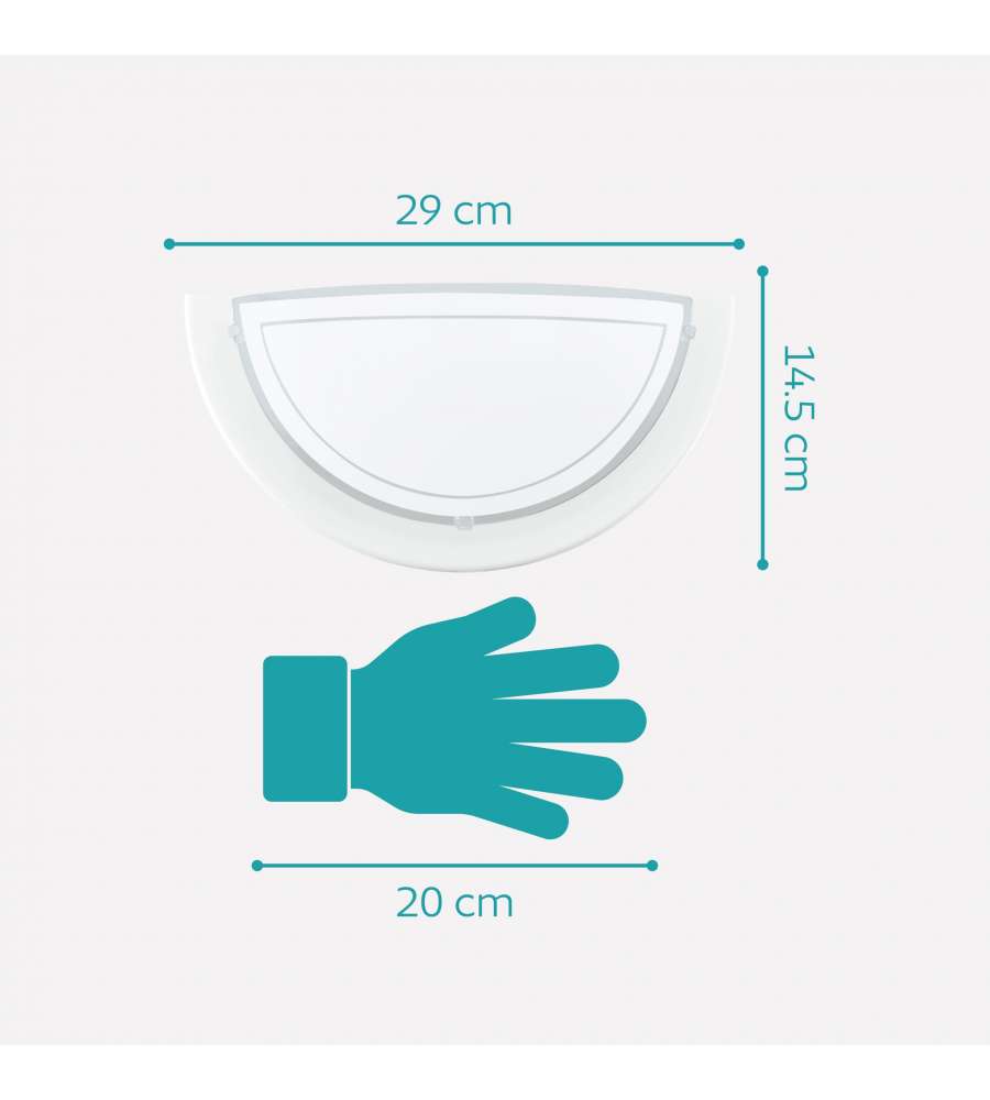 Descrizione: Scopri l'Eglo Applique Planet 1, lampada da parete bianca con design moderno e vetro serigrafato. Perfetta per interni, supporta lampadine E27 fino a 60W. Dimensioni compatte: 29x14,5 cm. Aggiungi stile alla tua casa!