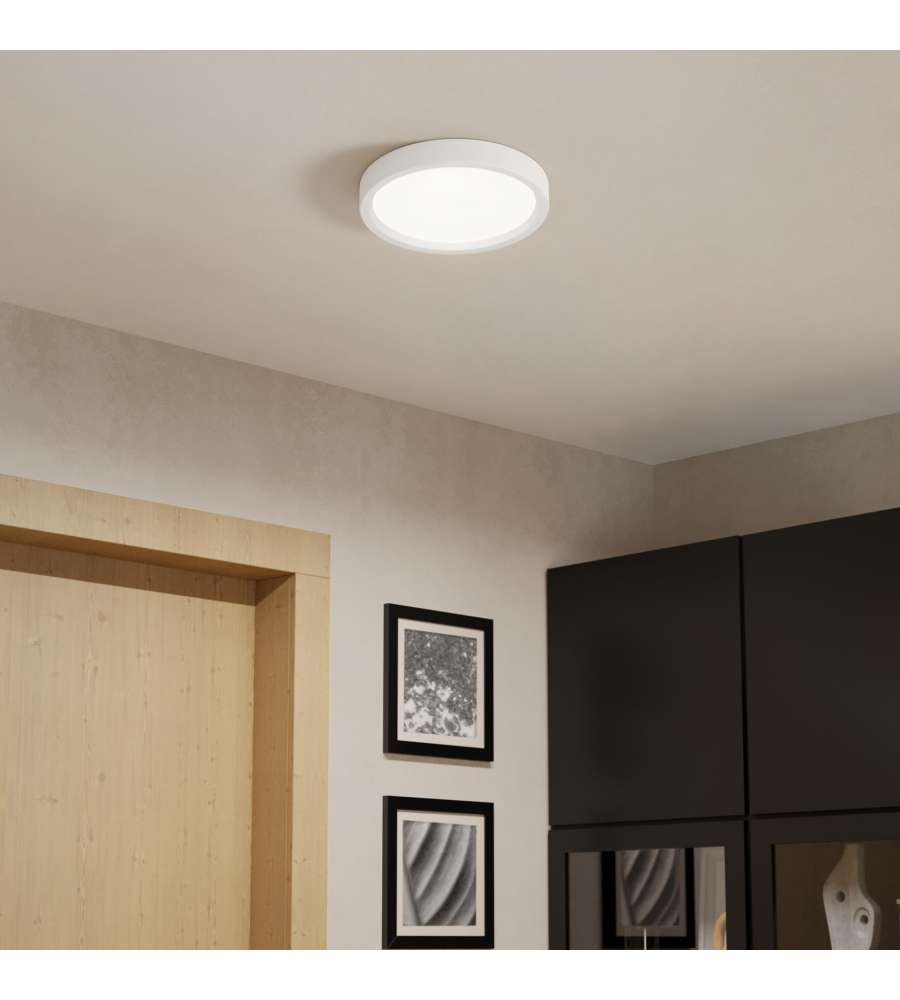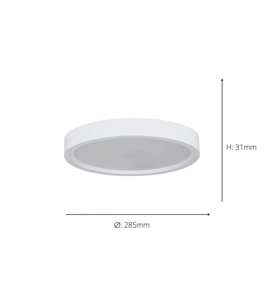 Plafoniera LED 17W con luce bianca naturale (4000K) e 2000lm. Realizzata in policarbonato bianco, classe di efficienza E, dimensioni 285 x 31 mm. Design elegante e semplice, ideale per ogni ambiente. Non dimmerabile e senza interruttore.Consumo: