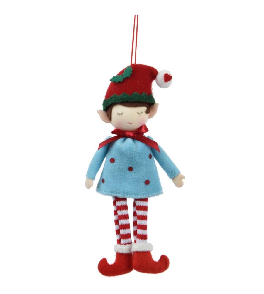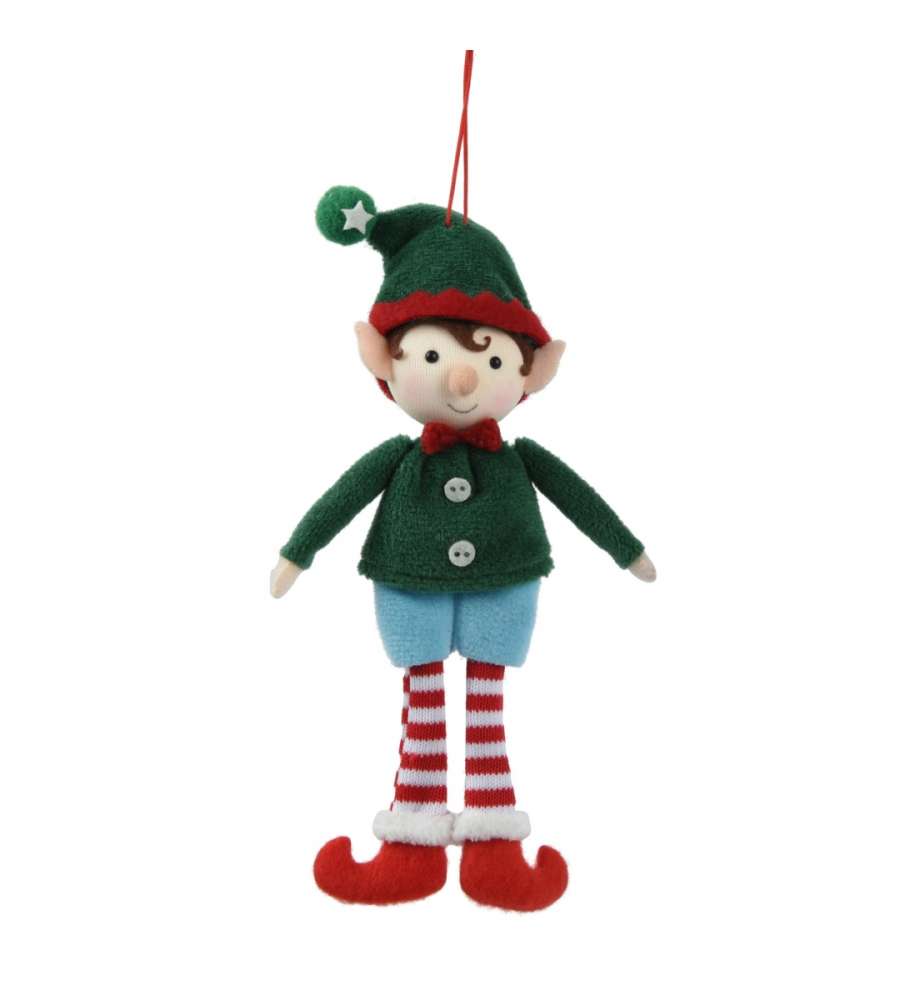 Elfo Decoris Natalizio 17cm: decorazione in poliestere con colori vivaci, gancio in cotone, ideale per l'albero di Natale. Dimensioni compatte: 17x8x3 cm. Perfetto per un tocco festivo.