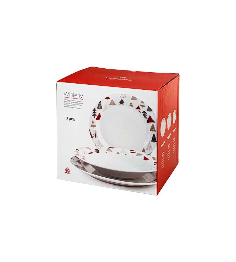 Descrizione: Scopri il servizio piatti in fine porcellana Winterly, composto da 18 pezzi, perfetto per le feste. Decorato con alberi del bosco dai colori natalizi, è lavabile in lavastoviglie e adatto al microonde. Rendi speciale la tua tavola!