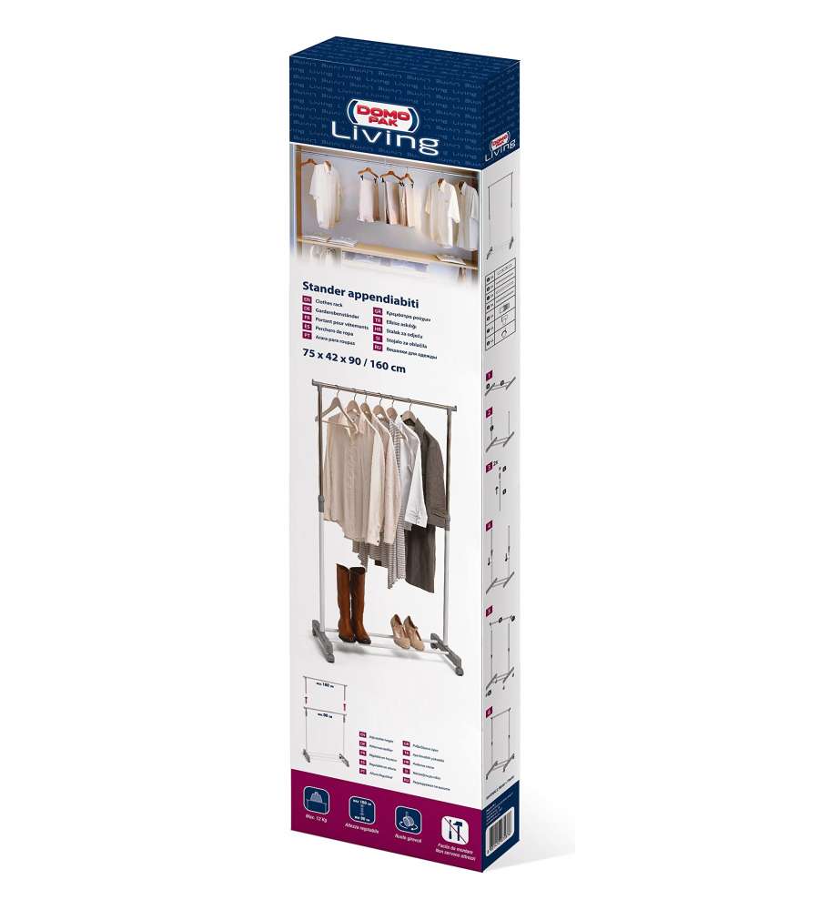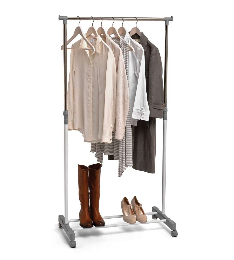 Appendiabiti singolo Misterpack, dimensioni 80 x 42 x 98/165 cm, regolabile in altezza, struttura robusta, ideale per organizzare spazi.
