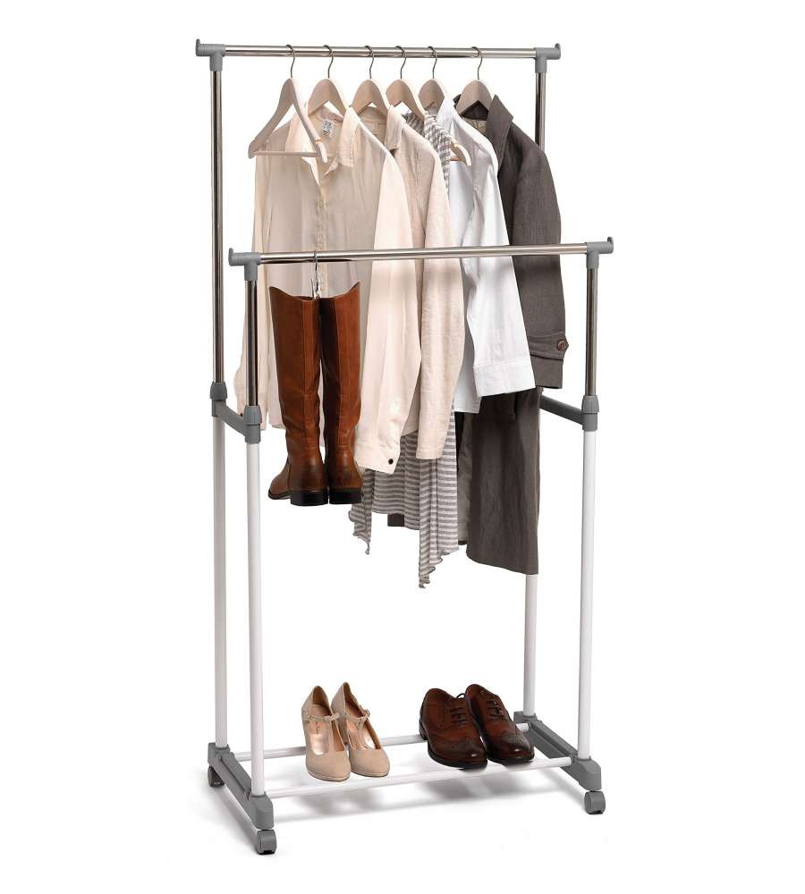 Appendiabiti doppio Misterpack, dimensioni 80 x 42 x 98/165 cm, regolabile in altezza, struttura robusta, ideale per organizzare spazi."Super soluzione per il cambio armadio e disporre tutto in ordine."