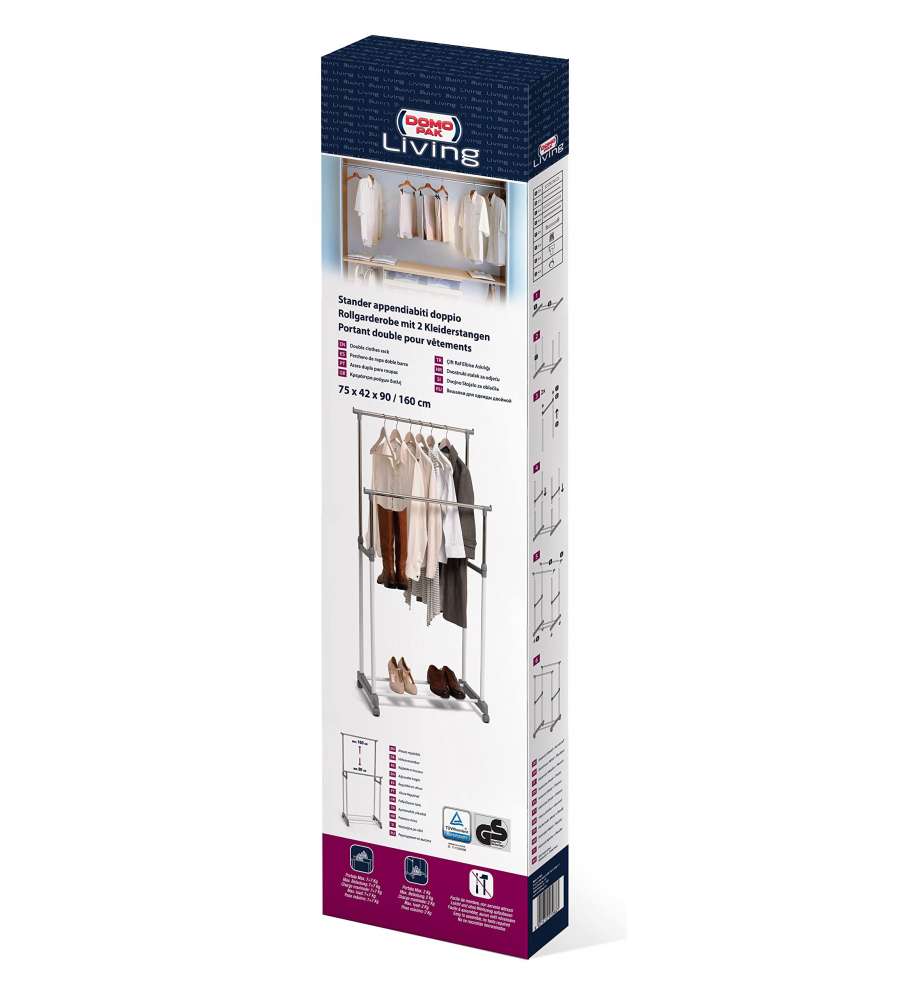 Descrizione: Scopri l’appendiabiti doppio Misterpack, ideale per ogni guardaroba. Dimensioni: 80 x 42 x 98/165 cm. Perfetto per organizzare spazi e vestiti con stile e praticità.