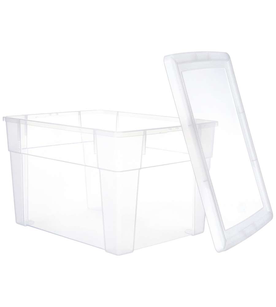 Box Visualbox High 39x29 H24 XL: in polipropilene trasparente, coperchio trasparente, chiusura a scatto, sovrapponibile, senza ruote.Altro 1: