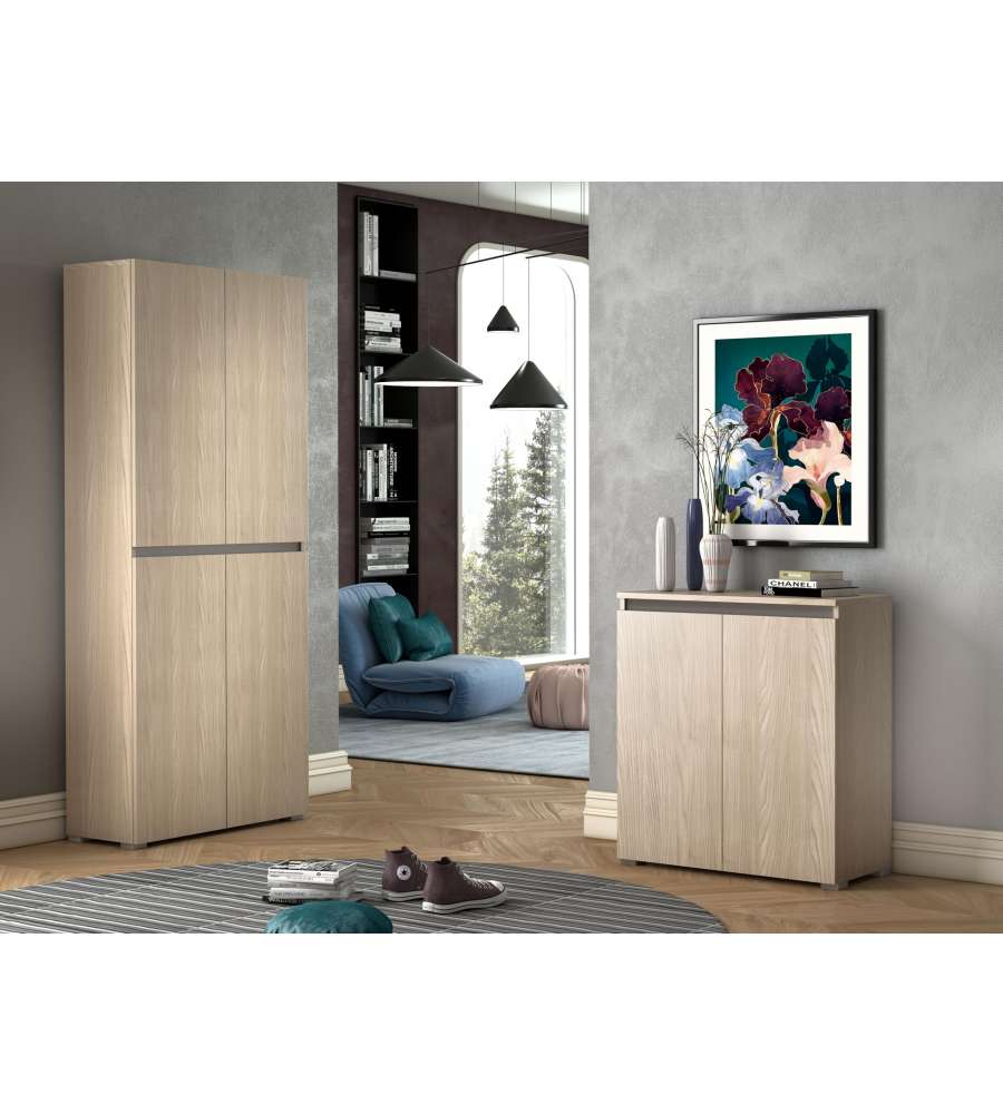Mobile multiuso in olmo con 2 ante e maniglia a gola, 3 ripiani regolabili per massima flessibilità. Dimensioni compatte 80x37x102 cm, ideale per ogni ambiente. Realizzato in pannello melaminico E1, resistente e di alta qualità.Capacità: