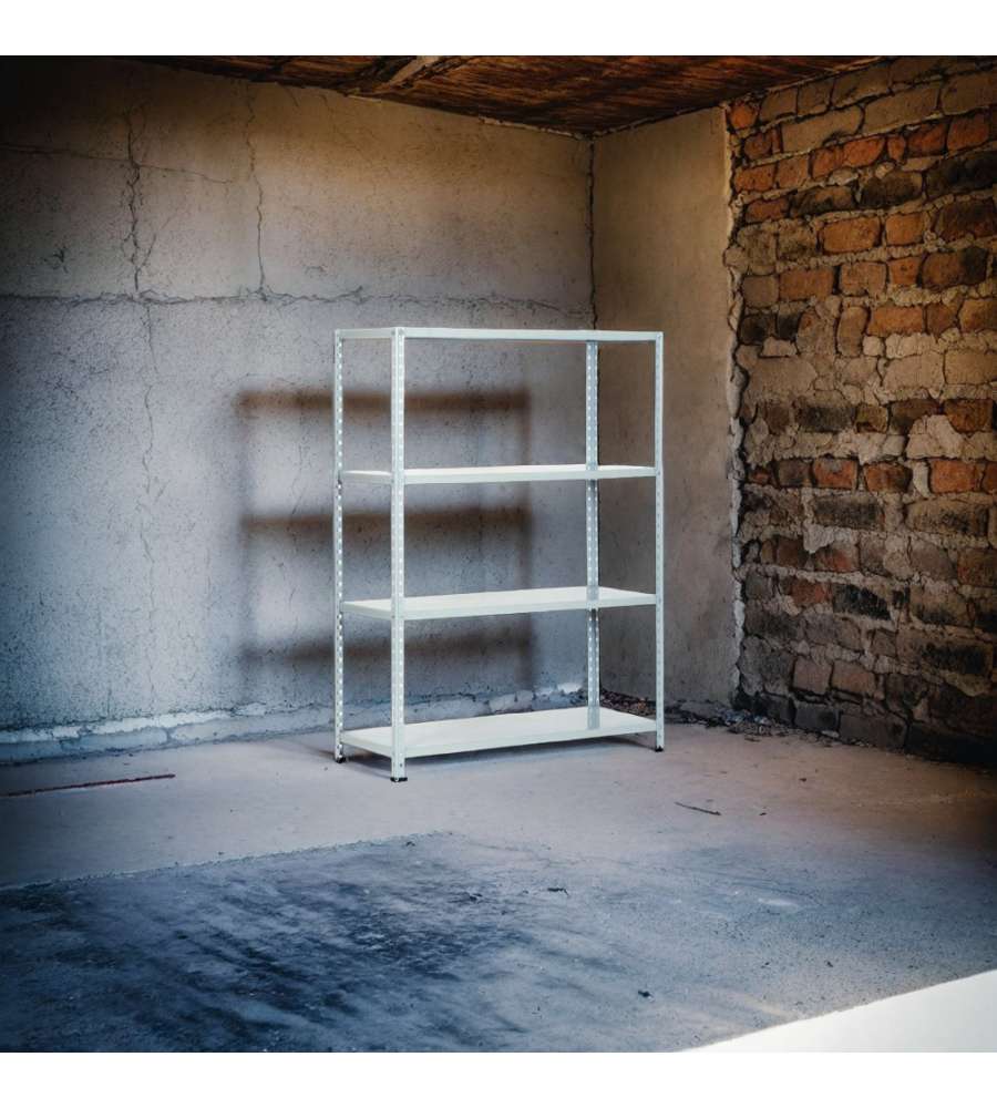 Descrizione: Scaffale bianco in metallo verniciato con 4 ripiani regolabili in altezza. Ideale per organizzare spazi come garage, uffici, cantine o ripostigli. Struttura robusta e facile da montare, con portata di 30 kg per ripiano.