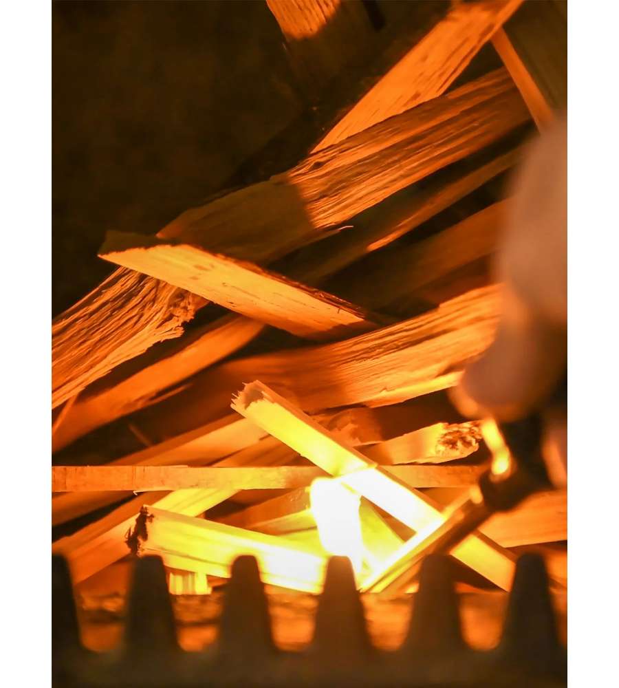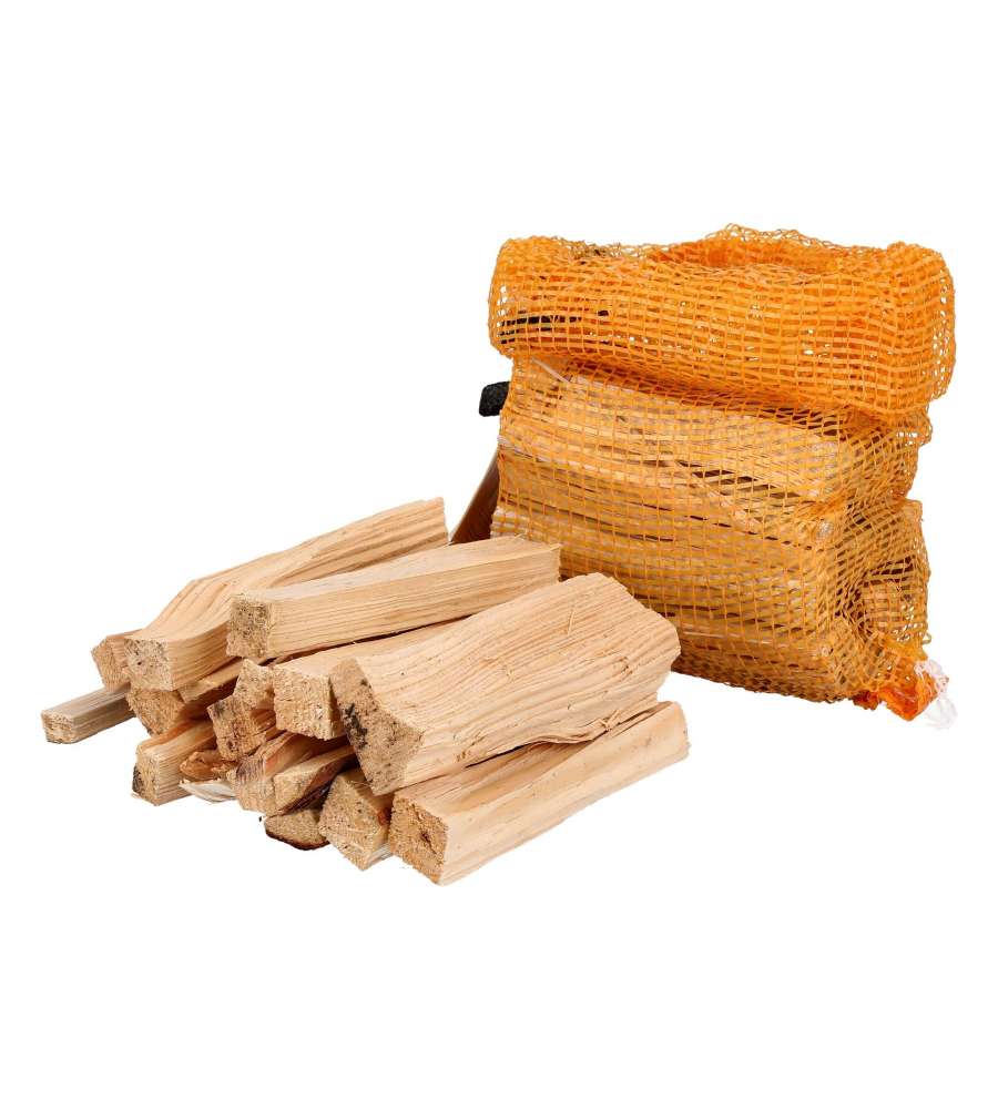 Descrizione: Sacco di legnetti accendifuoco in pino, ideale per stufe, caminetti e campeggio.