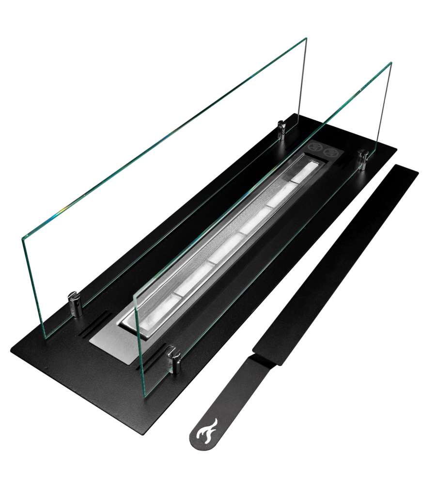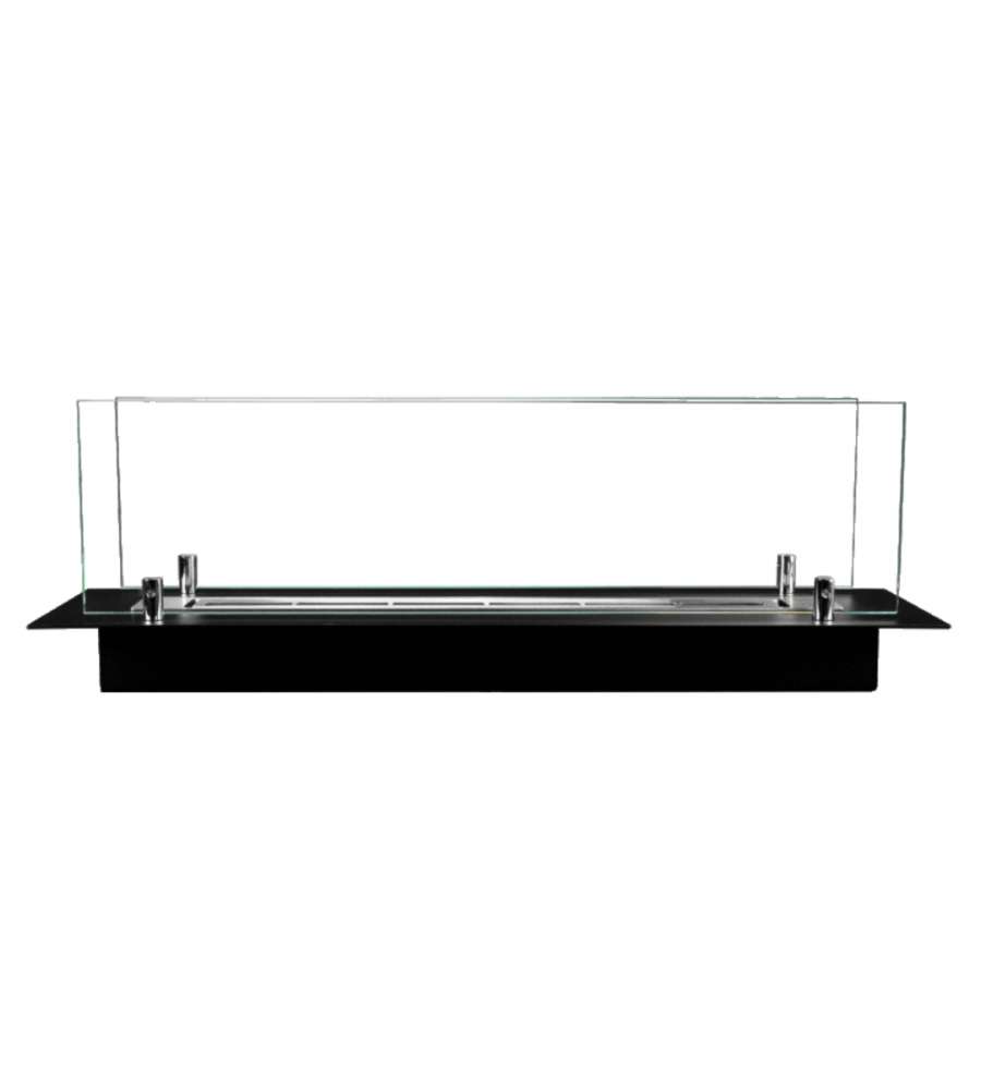 Bruciatore a bioetanolo in acciaio inox da 65 cm con vetro, capacità 0,7 lt. Riscalda ambienti fino a 25-30 mq per 2-2,5 ore. Installazione da incasso o libera, cristalli temperati resistenti a 400°C. Peso 9 kg, dimensioni precise: 64,5x19,4x21 cm.Destinazione d'uso: