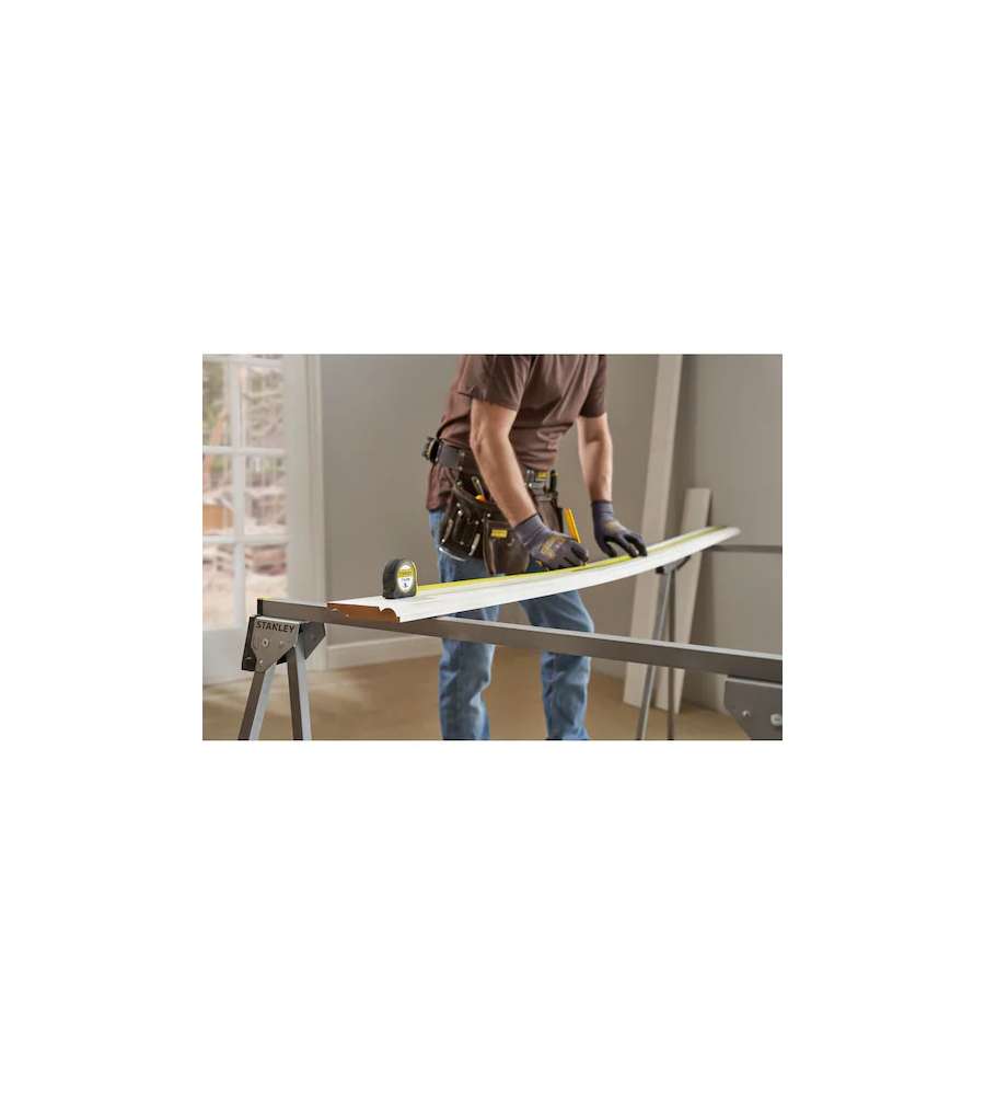 Flessometro Stanley Tylon 3m con nastro da 12,7 mm, cassa in ABS antiurto e rivestimento in gomma antiscivolo. Nastro con verniciatura polimerizzata e pellicola anti abrasione. Include clip d'aggancio per una facile portabilità.