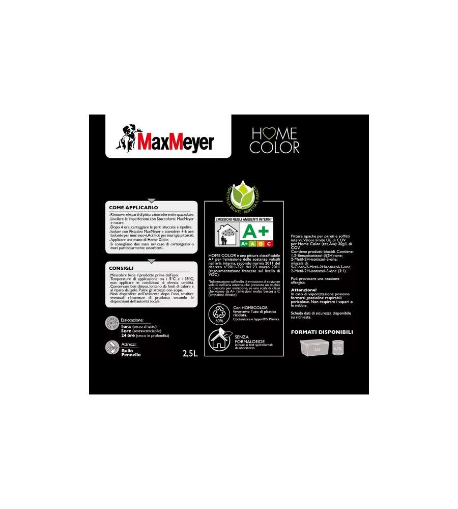 Idropittura Home Color MAXMEYER "Seduzione", 2.5 L, superlavabile, adatta a tutti gli ambienti, finitura vellutata, resistente a macchie e graffi, inodore, applicazione a pennello e rullo, Categoria A+ per emissioni.Applicazione: