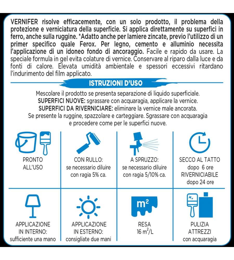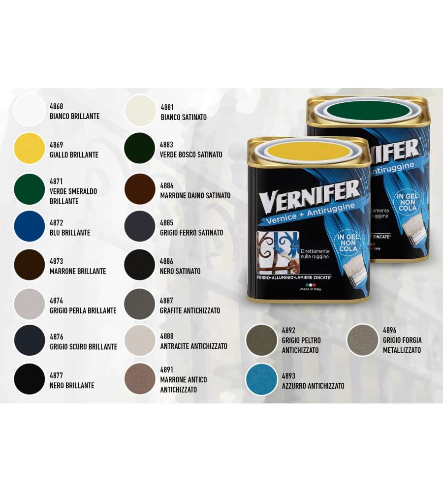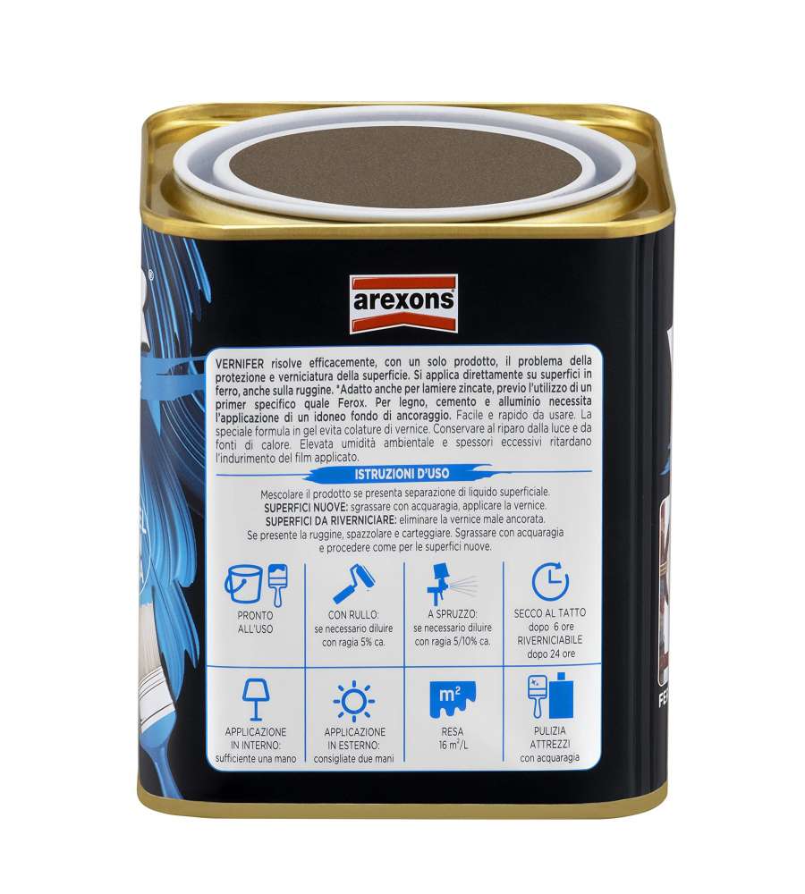 Vernifer Antichizzato Marrone Antico 750 ml: smalto antiruggine in gel, non cola, ottima pennellabilità, adatto per interni ed esterni, non necessita fondo anticorrosivo.Applicazione: