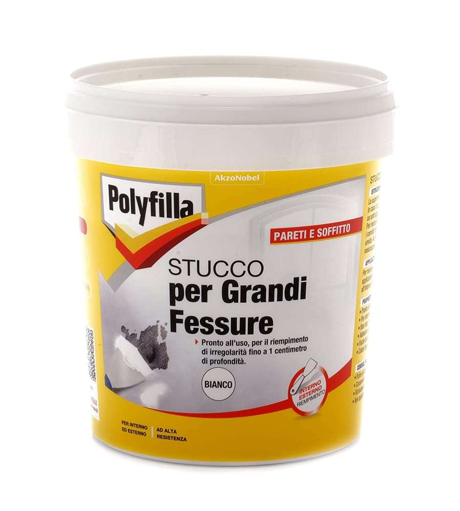 Stucco Polyfilla per grandi fessure, 1 kg. Pronto all'uso, facile da applicare con spatola. Ideale per riparazioni su supporti murari. Resistente all'acqua e alle crepe, riempie fessurazioni fino a 1 cm di profondità.Applicazione: