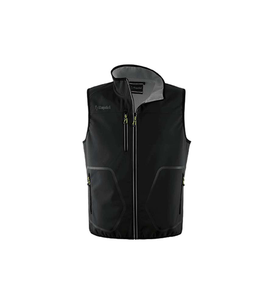 Descrizione: Gilet da lavoro Kapriol in softshell nero, leggero e antivento. Dotato di ampie tasche con zip e cerniera puller. Offre comfort e traspirabilità per ogni professionista.