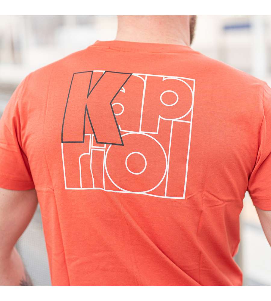 Descrizione: Scopri la T-Shirt Kapriol Enjoy in cotone rosso, ideale per lavoro e tempo libero. Realizzata in 80% cotone e 20% riciclato, offre comfort e stile urbano. Maniche corte e stampa di alta qualità.