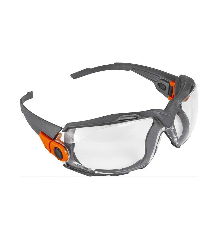 Descrizione: Occhiali protettivi Kapriol Target con lente panoramica in policarbonato, design avvolgente e inclinazione regolabile. Leggeri (95 g) e compatti, offrono comfort e sicurezza in ogni lavoro.
