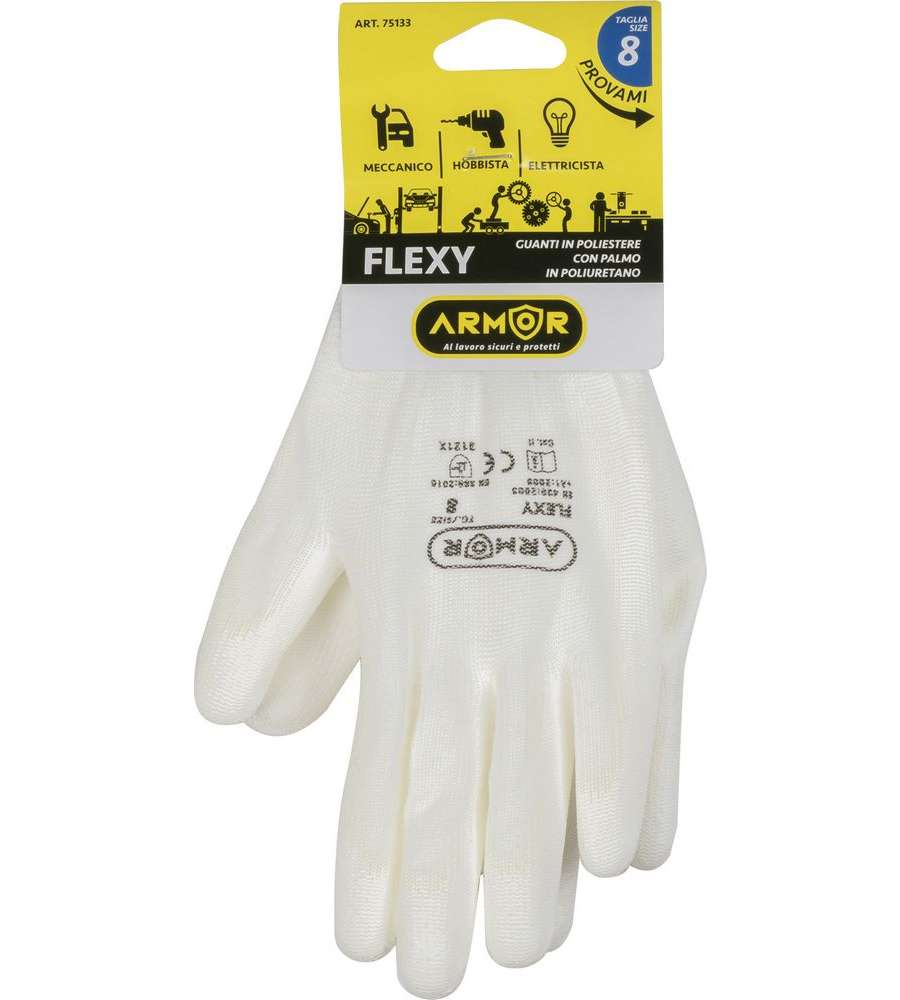 I guanti Flexy del marchio Armour sono certificati e adatti a lavori professionali e manuali. Guanto in poliestere e palmo in pu sono resistenti e adatti a meccanici, elettricisti e hobbisti. Taglia 8.Altro 1: