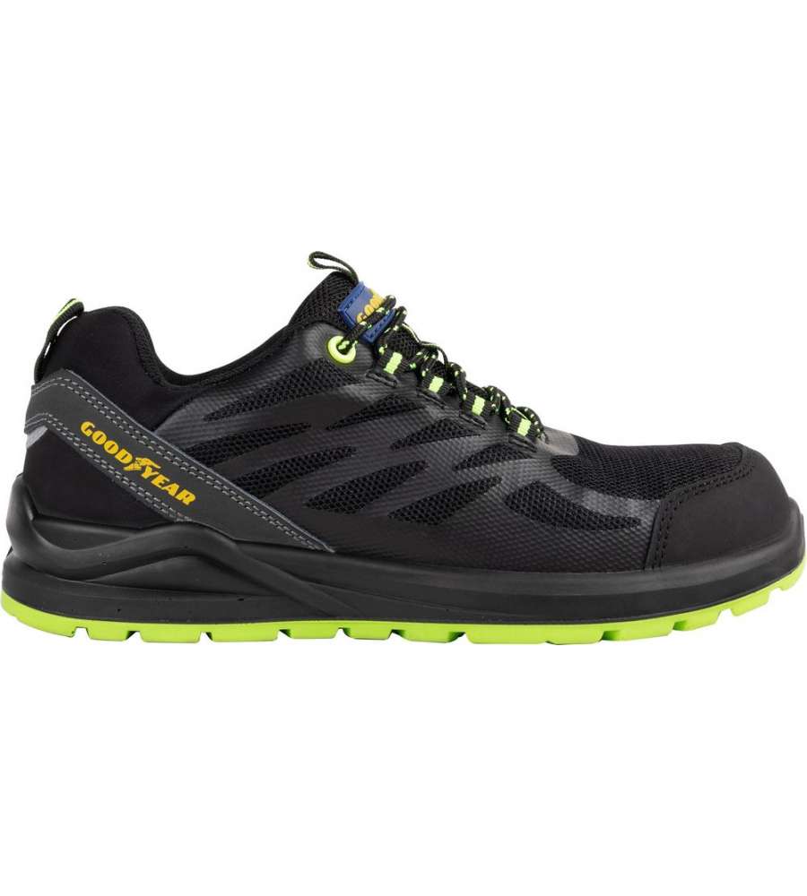 Goodyear propone la scarpa blackbat nera e verde in tessuto.Altro 1: