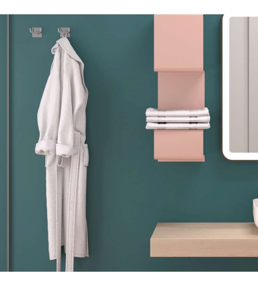 Descrizione: Appendiabito doppio Cold Wind Cromo di Metaform, elegante e salvaspazio, ideale per asciugamani e accappatoi. Design moderno in acciaio cromato resistente, facile da installare con biadesivo o viti.