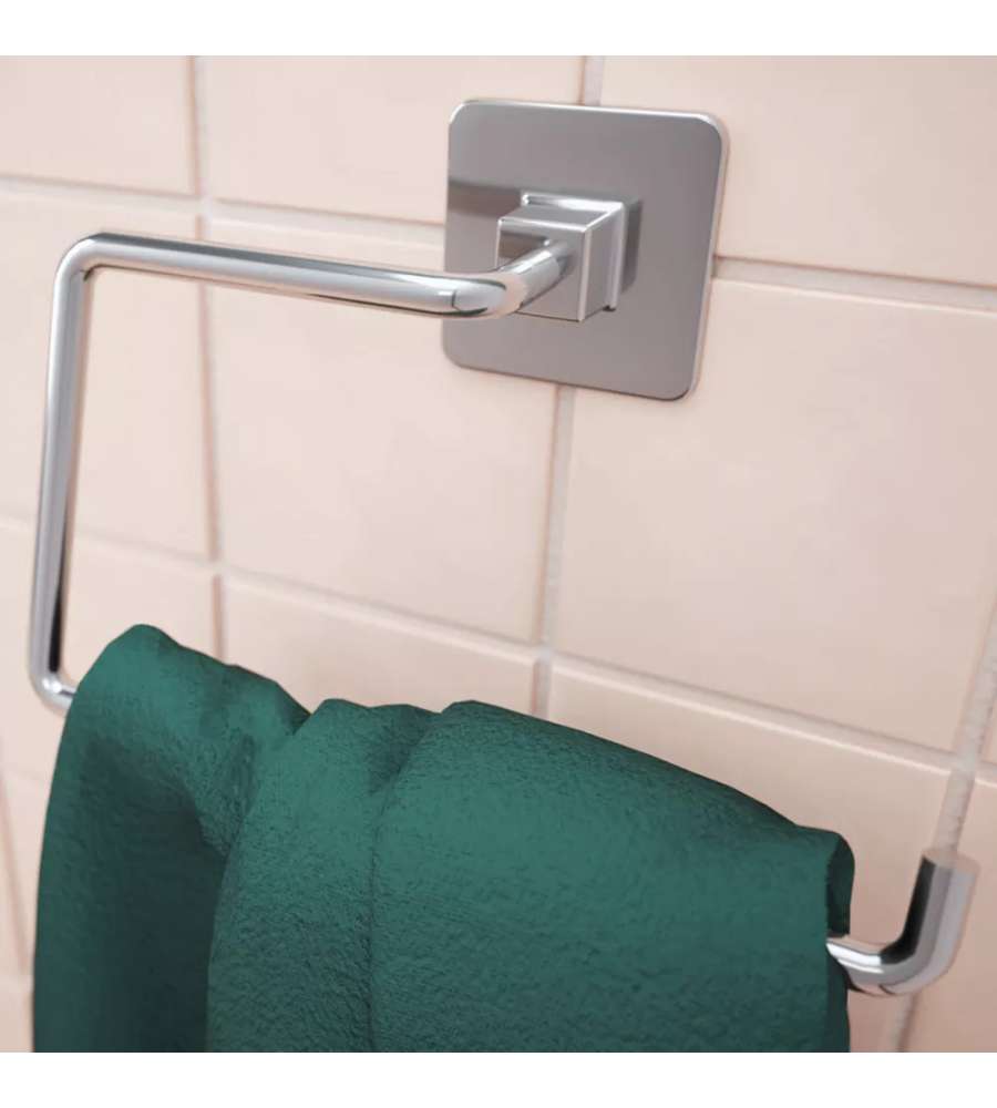 Portasciugamani ad anello in acciaio cromato, elegante e resistente. Dimensioni 18x7x12 cm, con doppio sistema di fissaggio. Perfetto per ogni arredo bagno, componibile con altri accessori della linea Cold Wind Cromo.