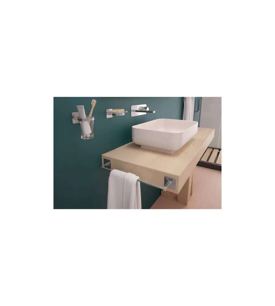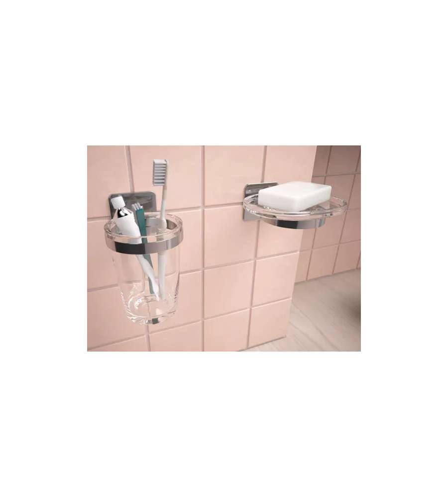 Portaspazzolini in resina trasparente e cromo, elegante e funzionale. Dimensioni compatte: 7,3 x 11,5 x 10,4 cm. Perfetto per organizzare spazzolini in modo chic. Marca: Metaform, modello: 105M03100. Quantità: 1.Altro 1: