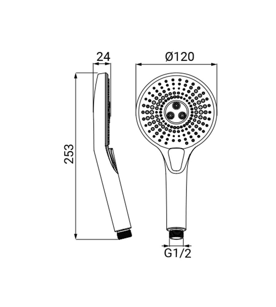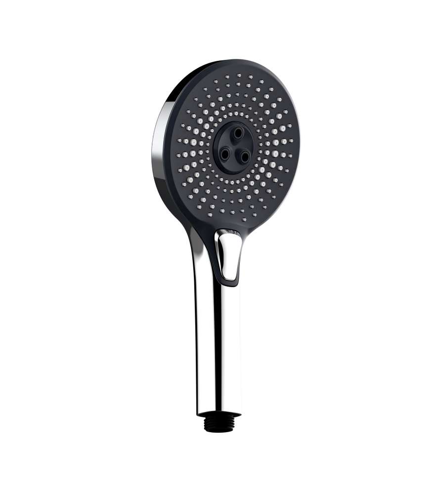 Descrizione: Scopri il doccino Vortex di diametro 12 cm, in finitura cromo e faccia nera. Tre getti regolabili per un'irrigazione personalizzata. Design ergonomico per un'ottima presa e durata nel tempo.