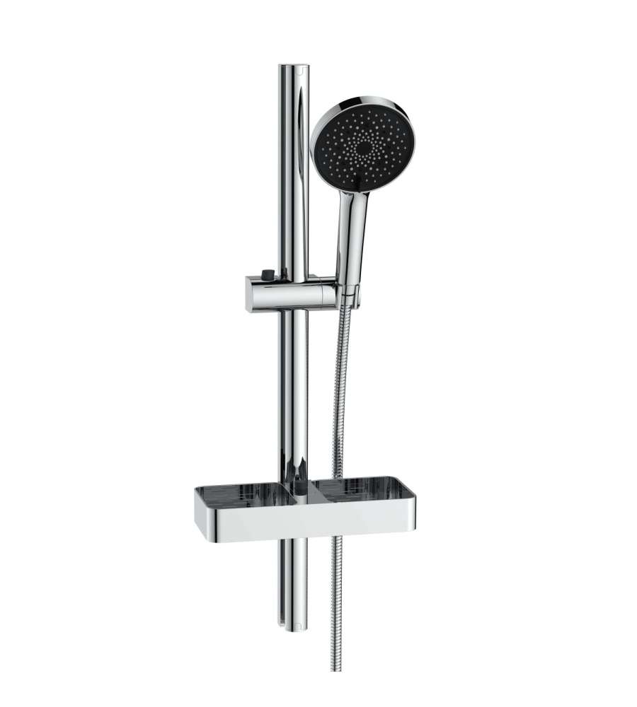 Descrizione: Scopri il Saliscendi Lift con mensola cromo di IDRO-BRIC: set completo con doccia a 3 getti, finitura anticalcare e risparmio d'acqua (9 l/min). Facile installazione e design elegante per il tuo bagno!