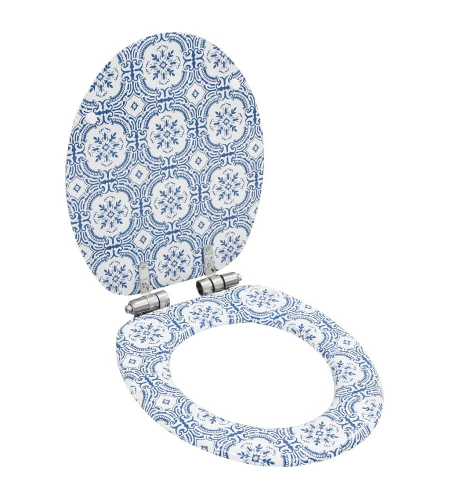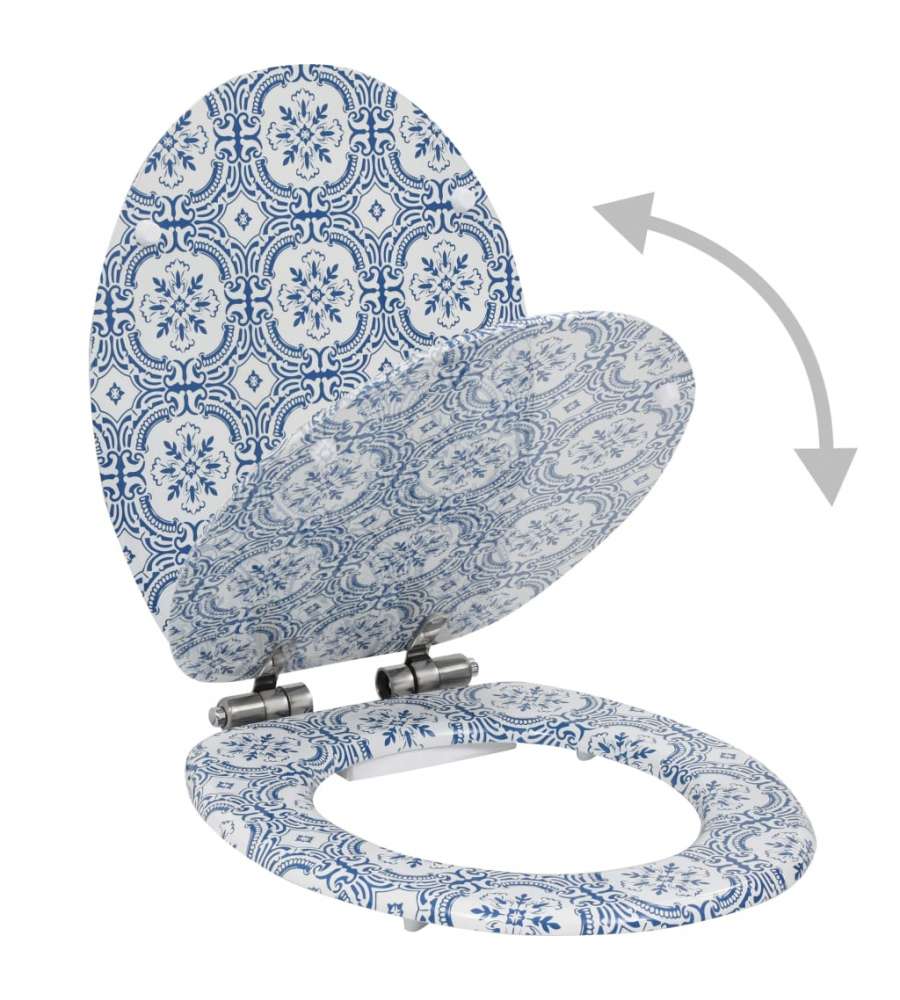 Con un disegno con porcellana marina Con funzione a chiusura rallentata Le cerniere possono essere regolate da 12 a 20 cm di larghezza Universale, adatto a tutti i WC standard