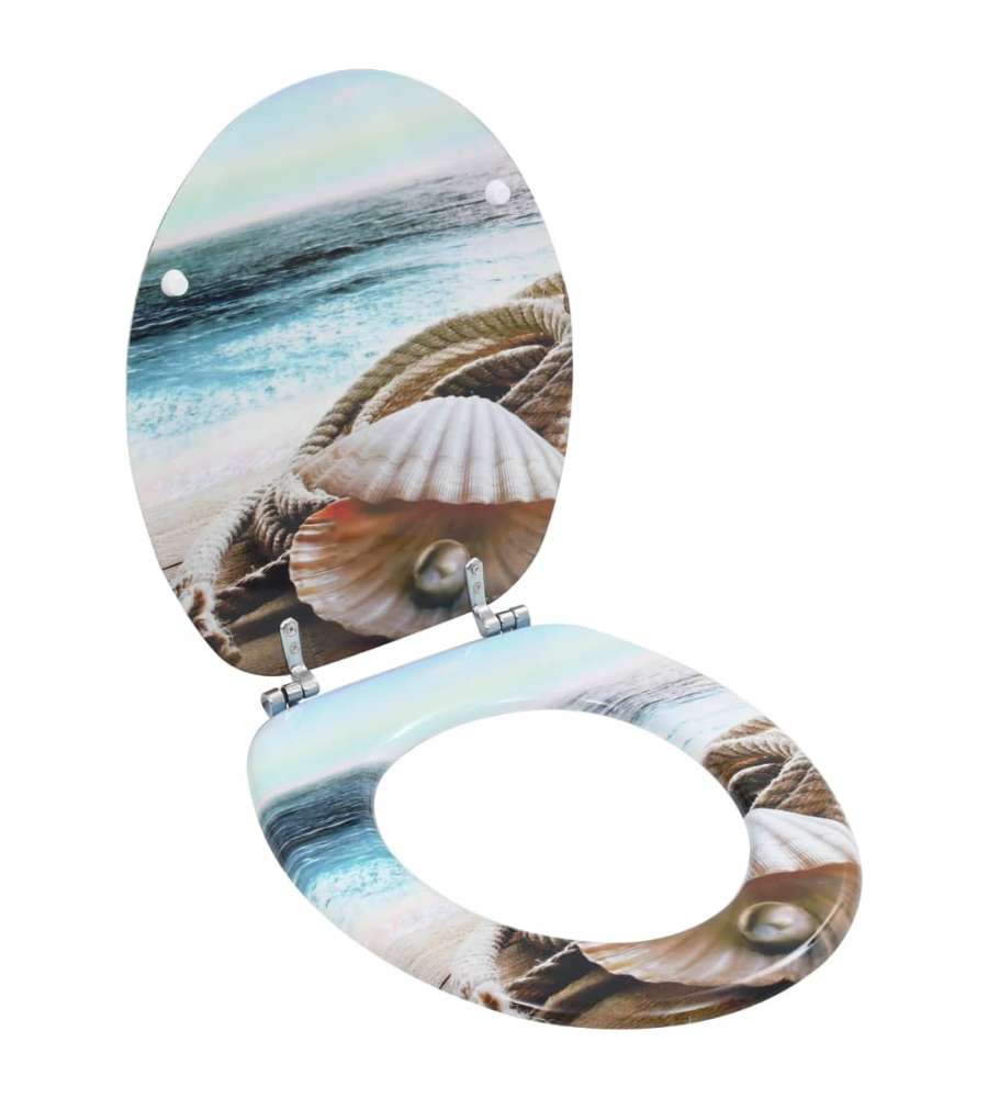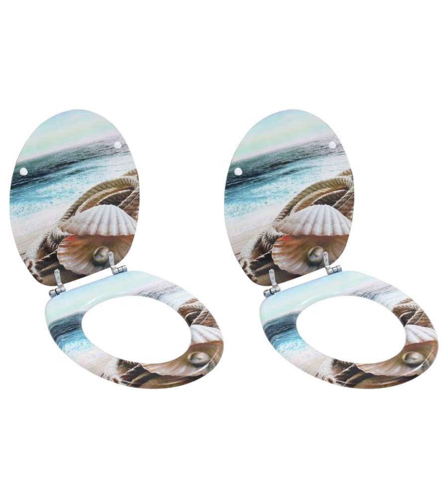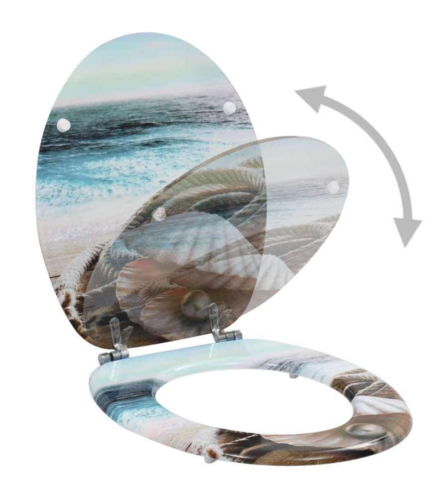 Con un disegno con conchiglie Le cerniere possono essere regolate da 12 a 20 cm di larghezza Universale, adatto a tutti i WC standard La consegna include 2 sedili per WC con coperchio