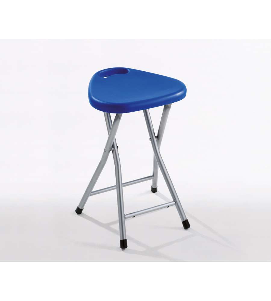 Sgabello richiudibile blu, realizzato in metallo e resine termoplastiche. Dimensioni: 300x293x465 mm. Peso: 1170 gr. Colore: blu.Garanzia: