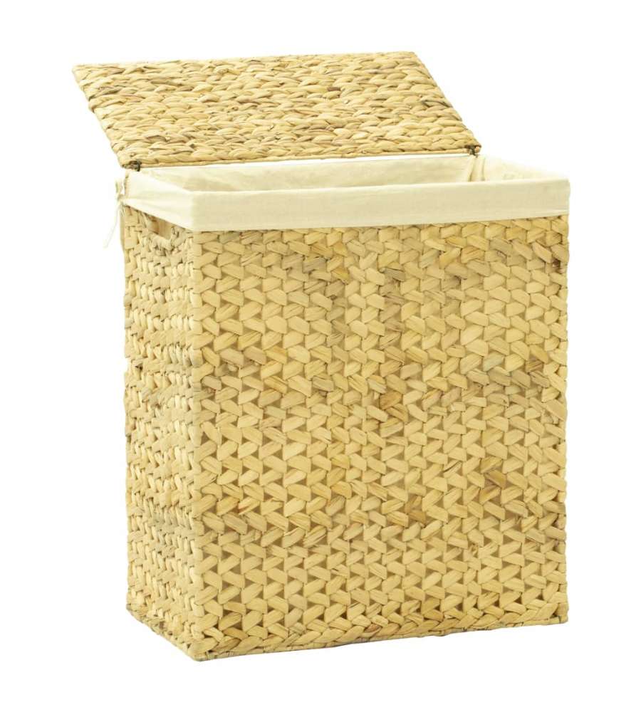 Cesto per la biancheria: Colore: Naturale e fodera crema Dimensioni: 50x27x58 cm (LxPxA) Materiale: Giacinto d'acqua, fodera in poliestere e telaio in ferro Diametro del telaio: 4,5 mmAltro 6: