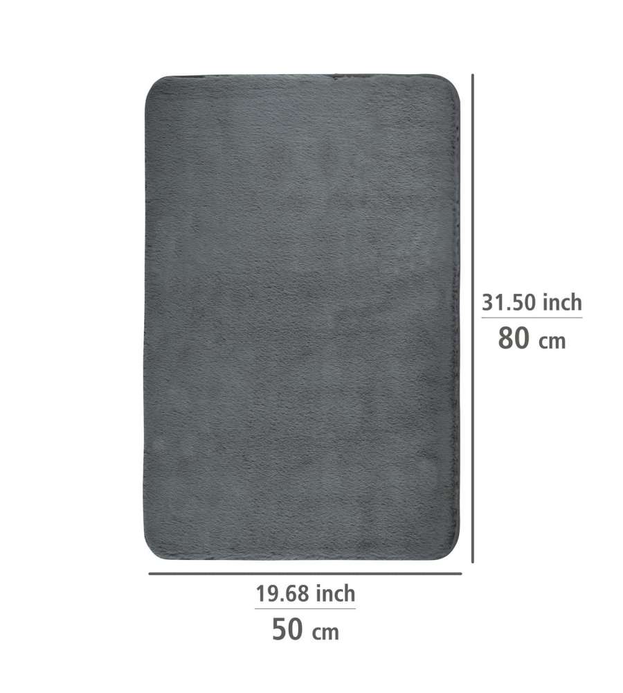Tappetino da bagno in microfibra antracite, morbido e spesso, con pelo di 20 mm. Antiscivolo e ad asciugatura rapida, lavabile fino a 40 °C. Dimensioni 50x80 cm, ideale per riscaldare il pavimento.. Elegante e pratico per ogni bagno.Destinazione d'uso: