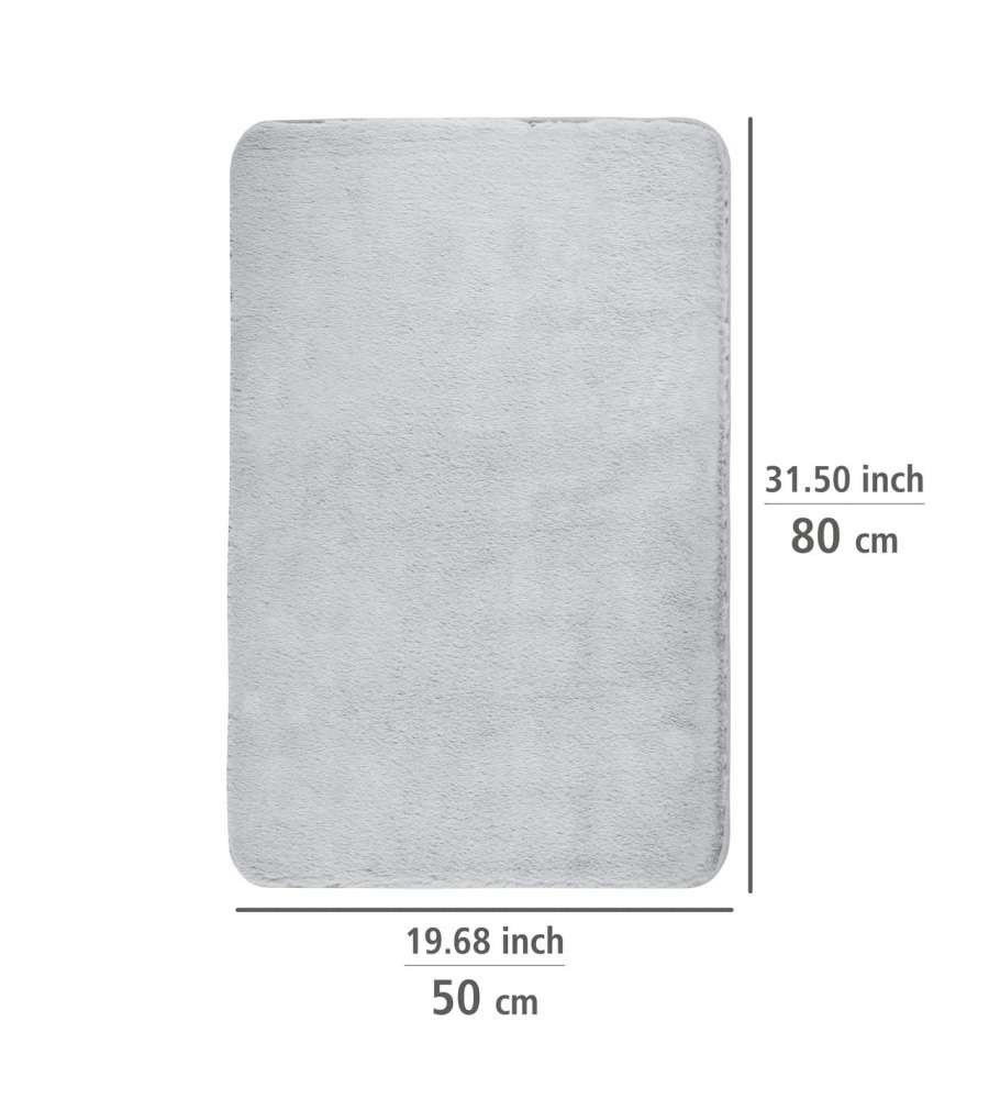 Tappetino da bagno in microfibra 100% poliestere, morbido e spesso, dimensioni 50x80 cm. Assorbente, asciuga rapidamente e senza pelucchi. Retro antiscivolo in TPR per sicurezza. Lavabile a 40°C, adatto per scaldare il pavimento. Colore grigio chiaroDestinazione d'uso: