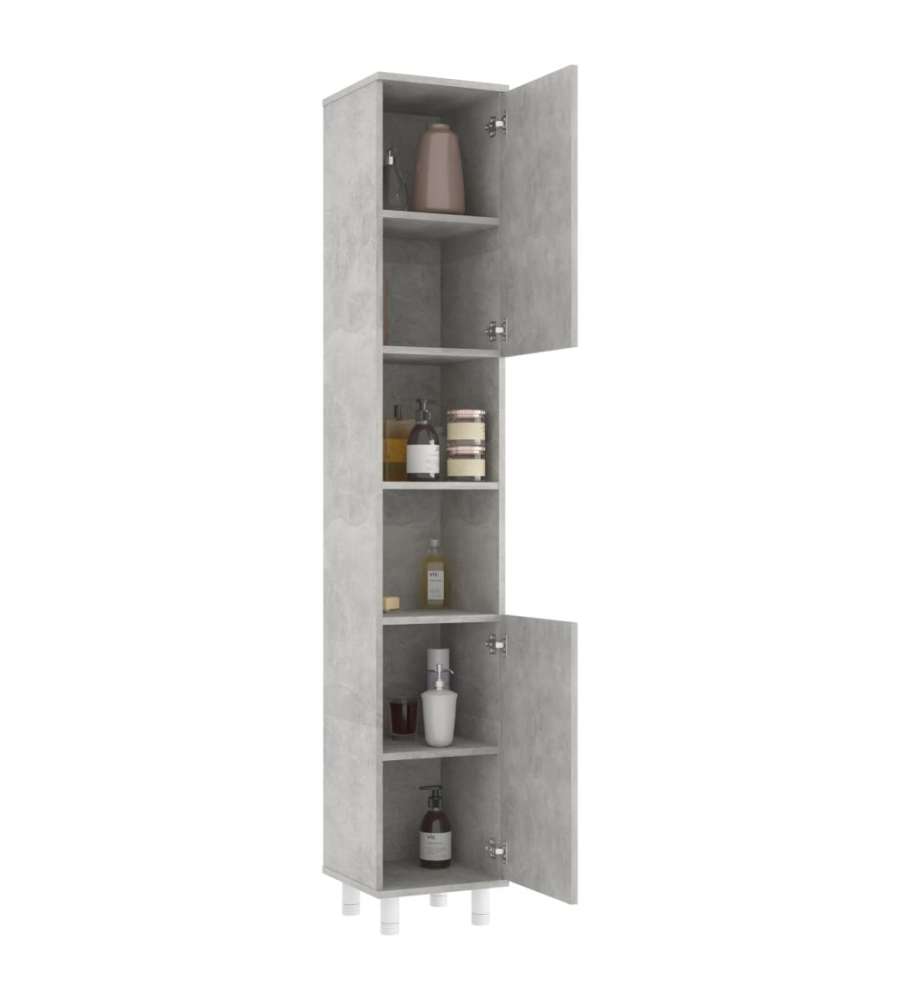 Colore: Grigio cemento Materiale: Truciolato Dimensioni complessive: 30x30x179 cm (LxPxA) Con una maniglia su ogni anta Assemblaggio richiesto: Sì